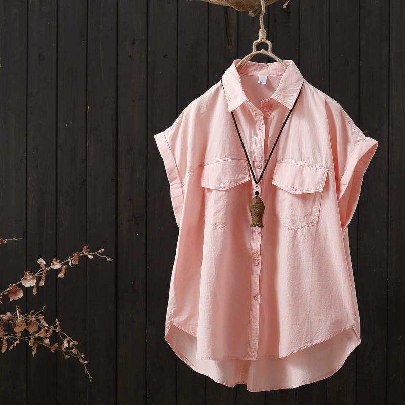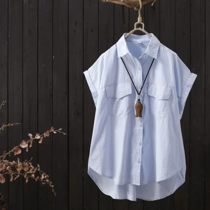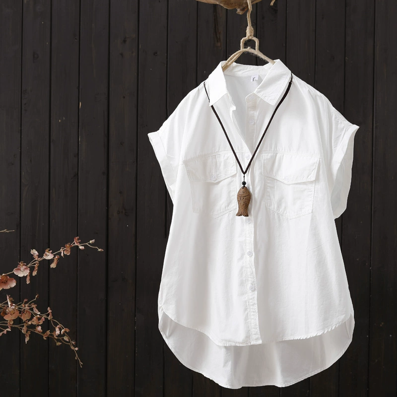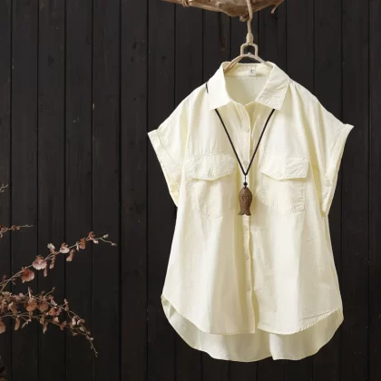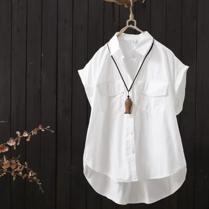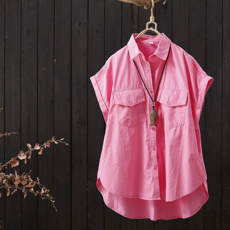 | nameOriginal | Solid color flying sleeves loose short front and long back niche shirt |