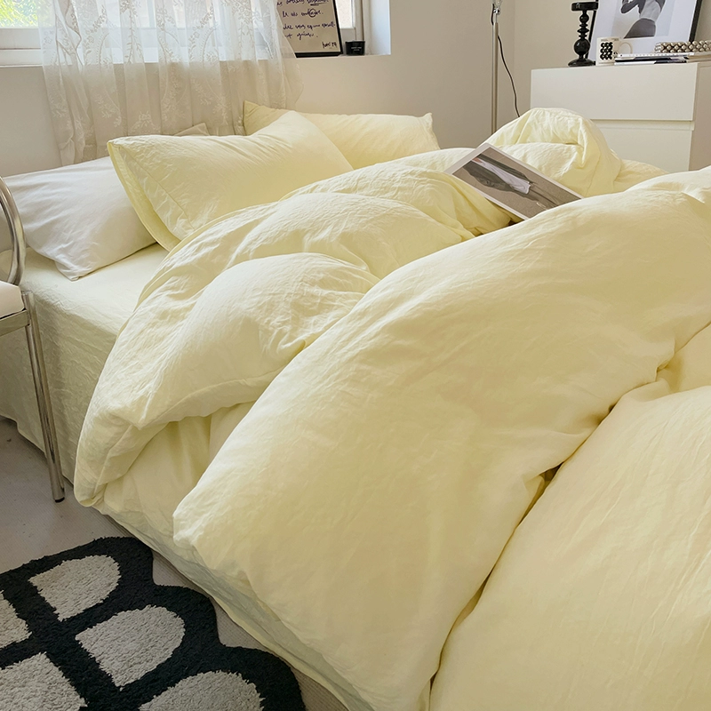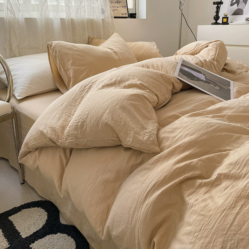 | nameOriginal | Solid color four-piece set of pleated washed cotton sheets and quilt covers, non-pure cotton, cotton dormitory three-piece bedding set, spring and summer |