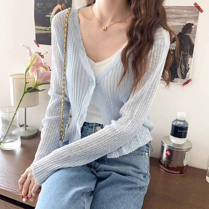 | nameOriginal | Solid Color Gentle Small V-neck Short 2024 Sunscreen Summer Spring and Autumn Coat Cardigan Breathable Shawl Women's Elegant Top |