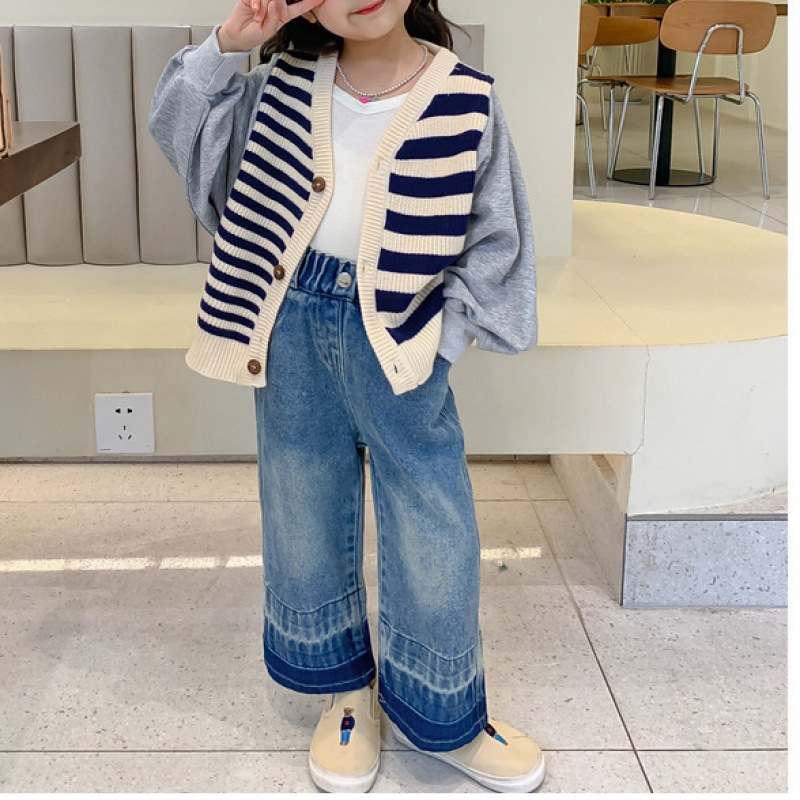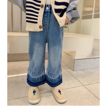| nameOriginal | Solid Color Girls' Wide Leg Pants 2024 New Korean Fashion Casual Denim Trousers Western Style Jeans for Children |