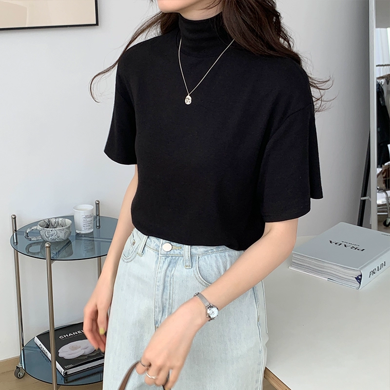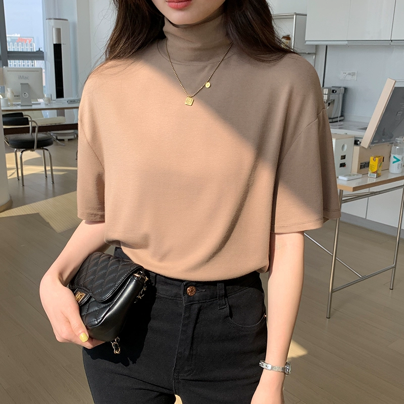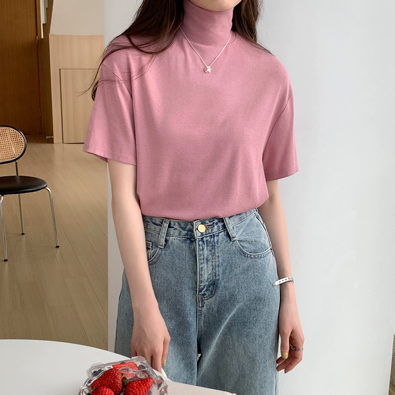 | nameOriginal | Solid color half turtleneck layered top short-sleeved T-shirt |