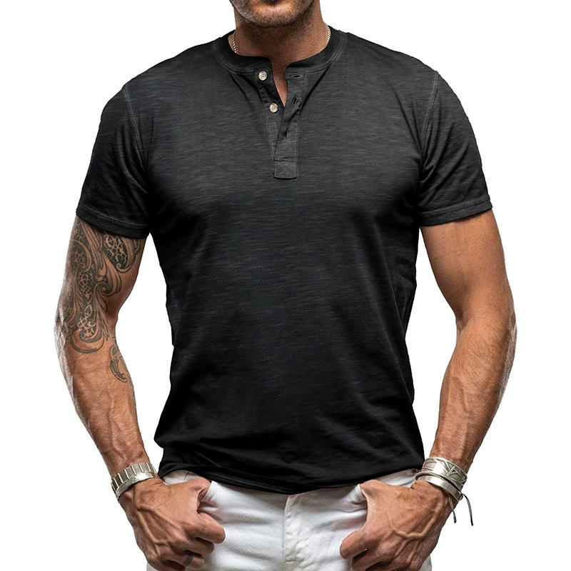 | nameOriginal | Solid color Henry T-shirt old retro solid color bamboo Henry shirt men's American short-sleeved T-shirt |