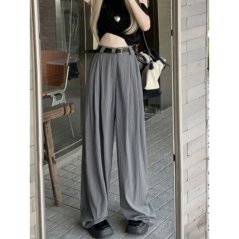 | nameOriginal | Solid color high waisted loose wide leg floor mopping casual pants |