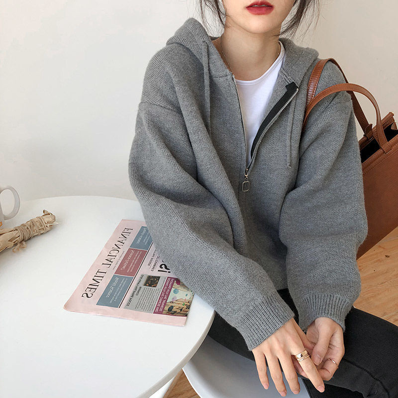 | nameOriginal | Solid Color Hooded Knitted Elegant Cardigan Jacket Women's Autumn and Winter New Korean Style Loose Outer Wear Lazy Sweater Women's Top |