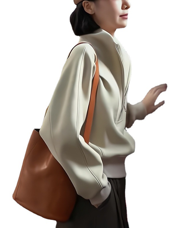 Solid color hooded sweater for women 2023 Autumn New loose casual western style age-reducing half zipper short long sleeve top