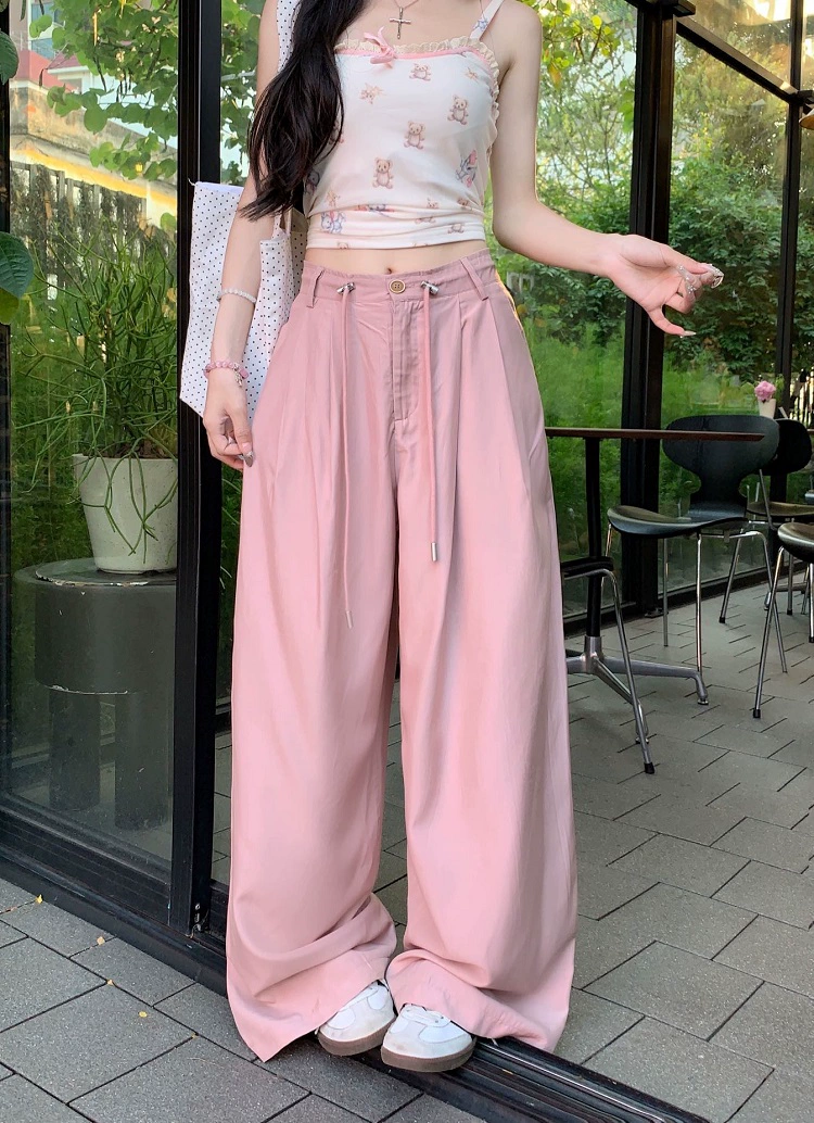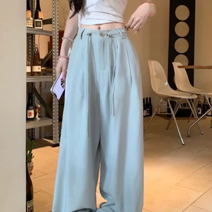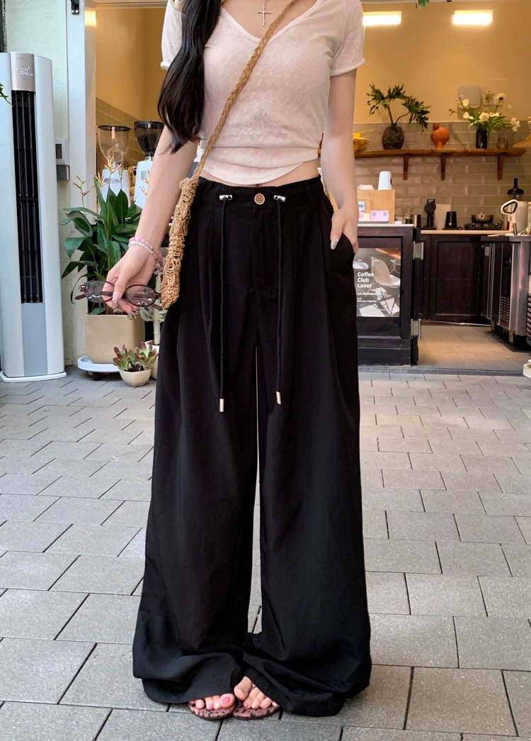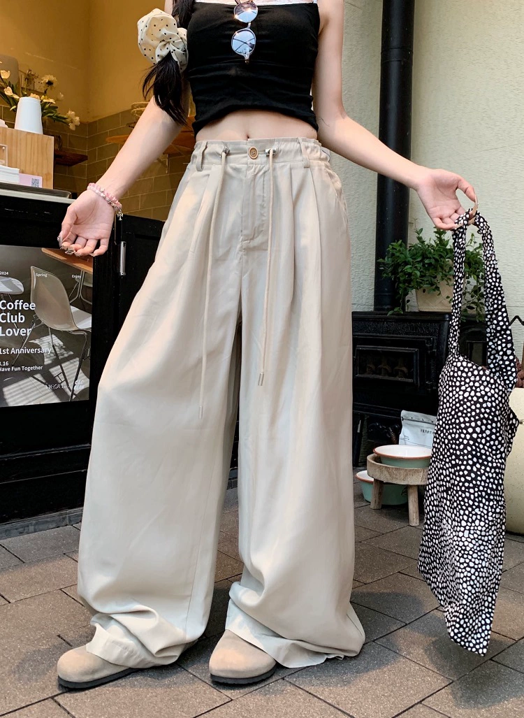 | nameOriginal | Solid color ice silk high waist loose drawstring floor mopping casual pants |