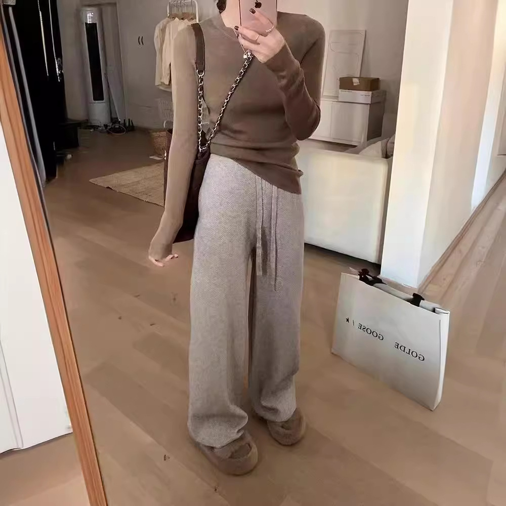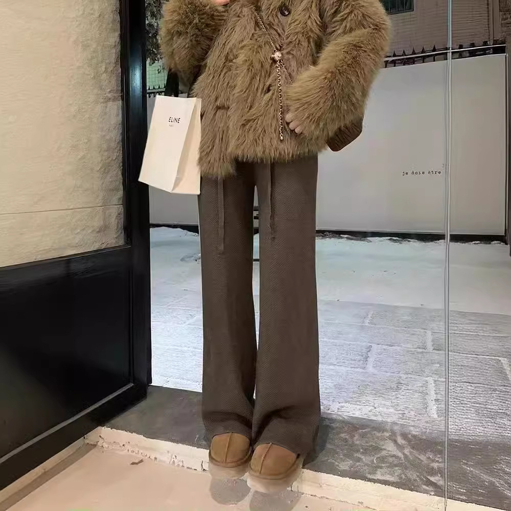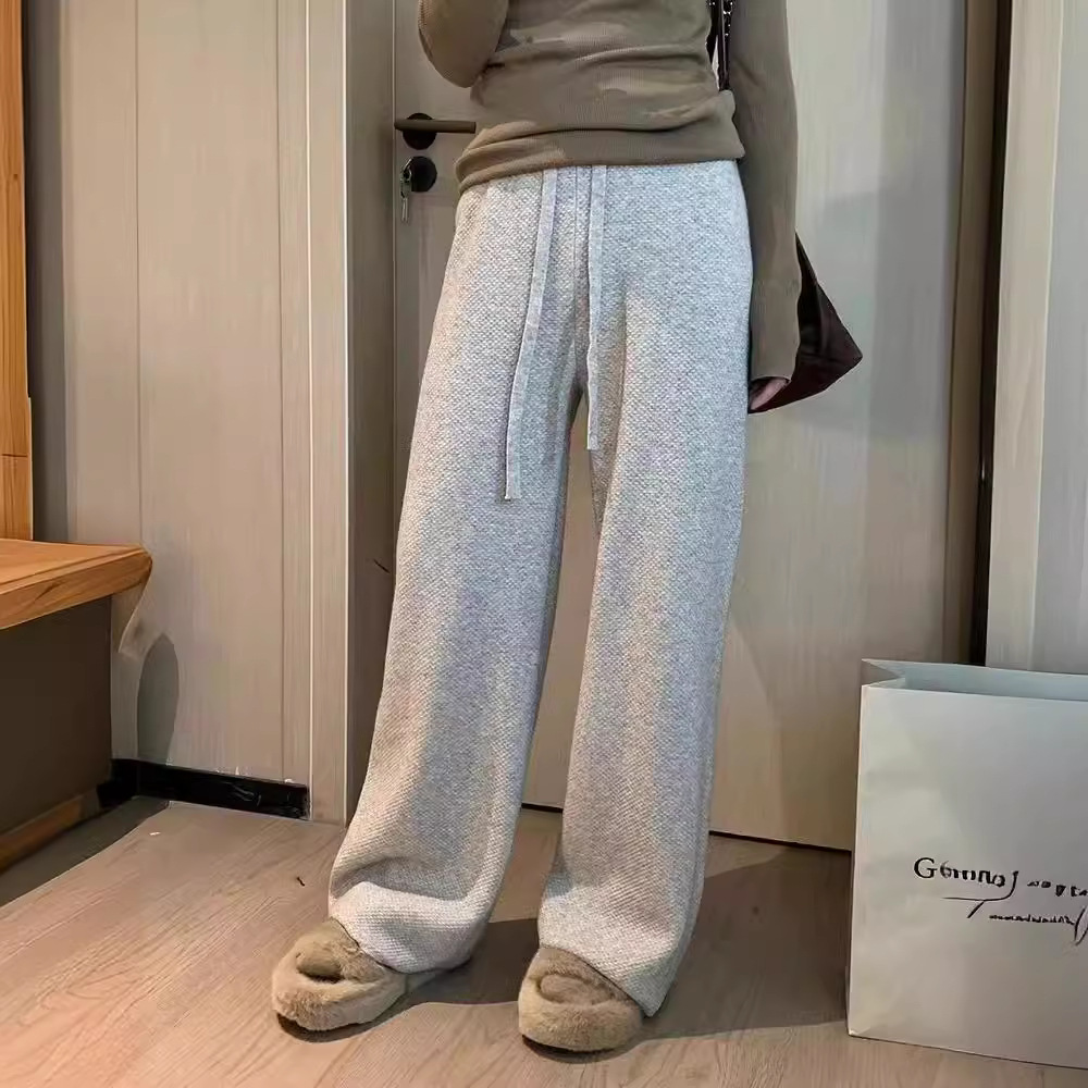 | nameOriginal | Solid Color Knitted Wide-leg Pants Women's 2024 Autumn and Winter New Waffled High Waist Slim-fit Straight Wool Pants |