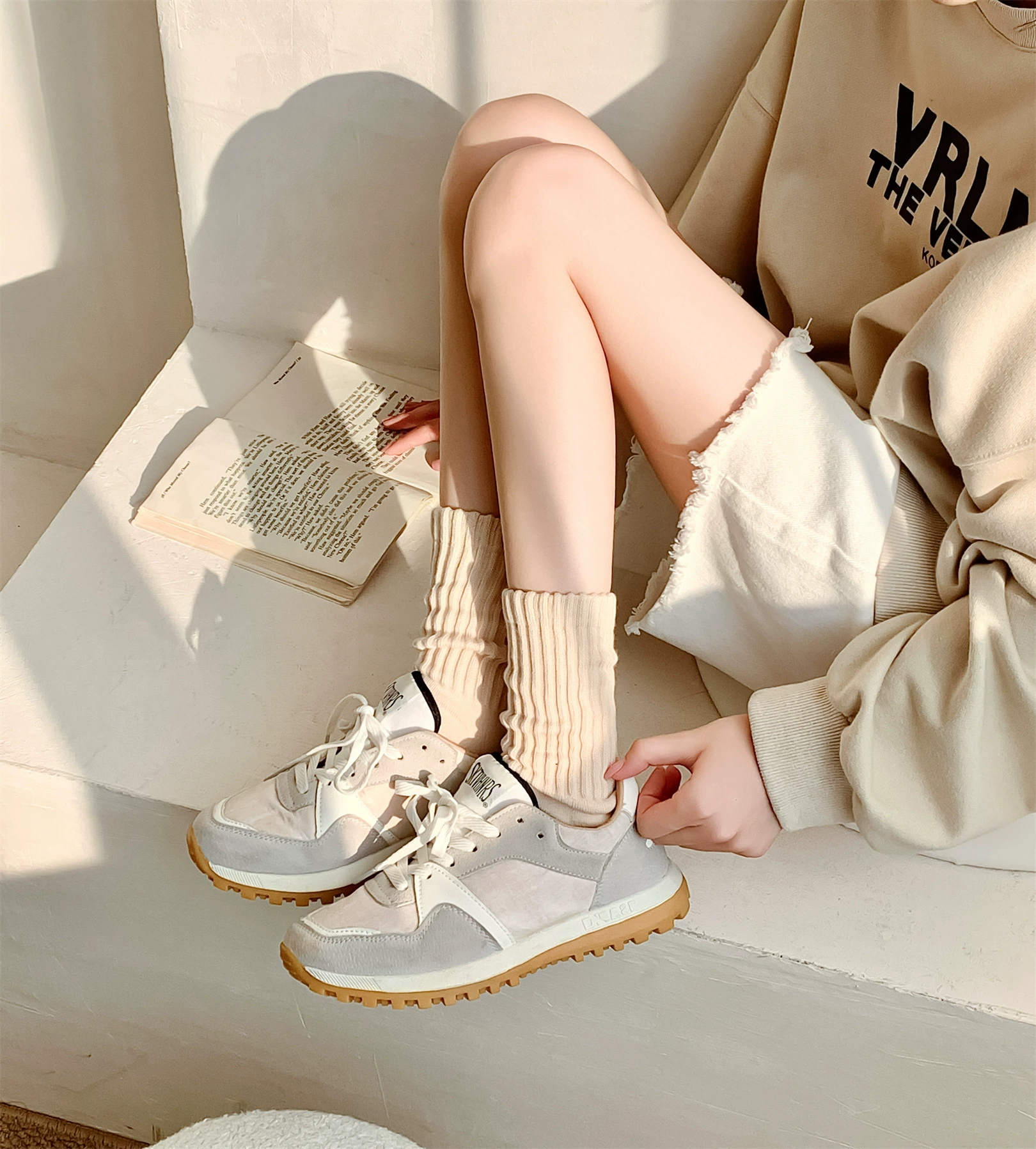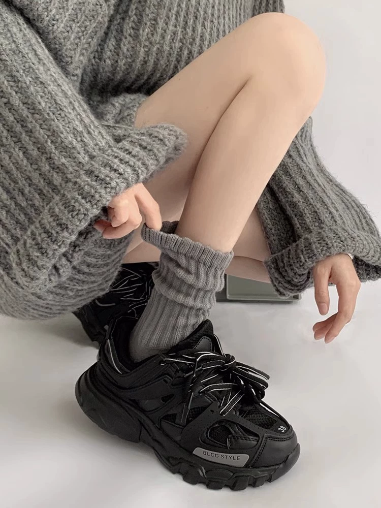 Pure color lazy wind towel bottom pile of socks Japanese coarse -line work white autumn and winter women’s socks long cylinder