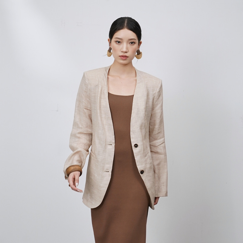 | nameOriginal | Solid Color Linen V-neck Casual Suit 2024 Autumn New Designer Ramie Suit Jacket R22838 |