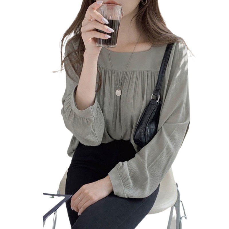 | nameOriginal | Solid Color Long-sleeved Chiffon Shirt Women's Spring and Summer New French Square Collar Design Sense Niche Elegant All-match Base Top |