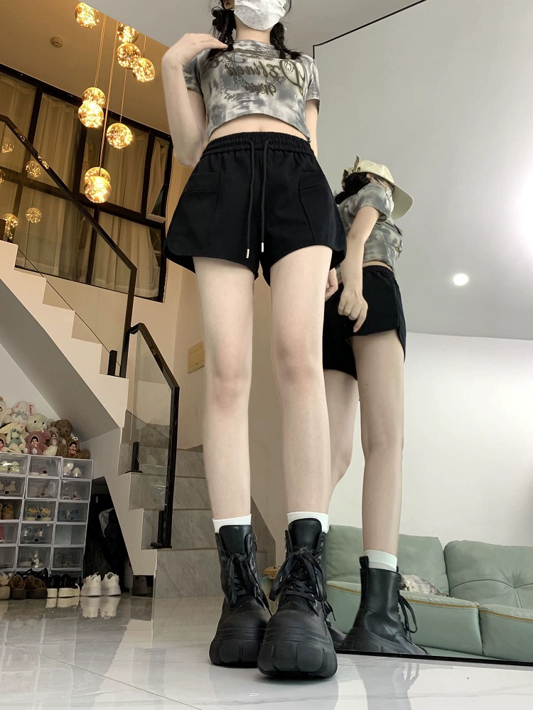 | nameOriginal | Solid color loose slimming high-waisted A-line shorts with drawstring |