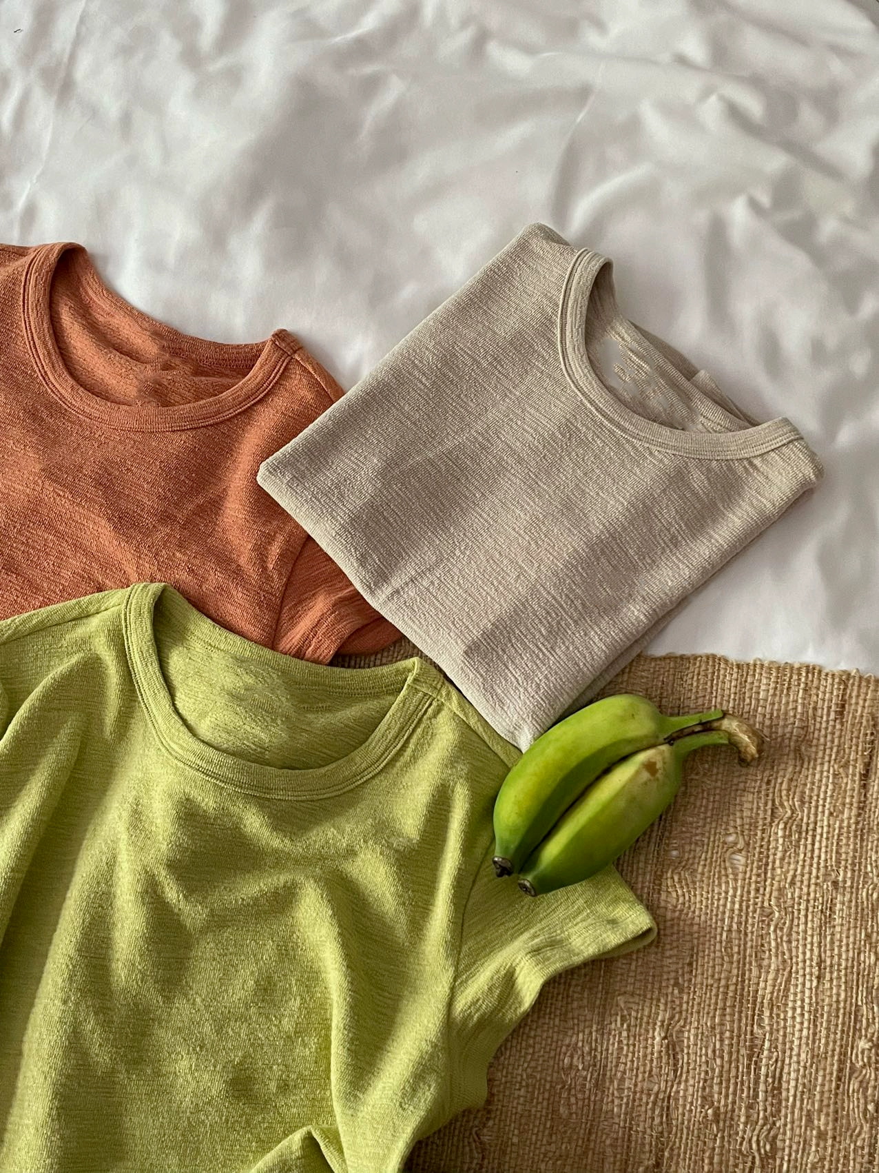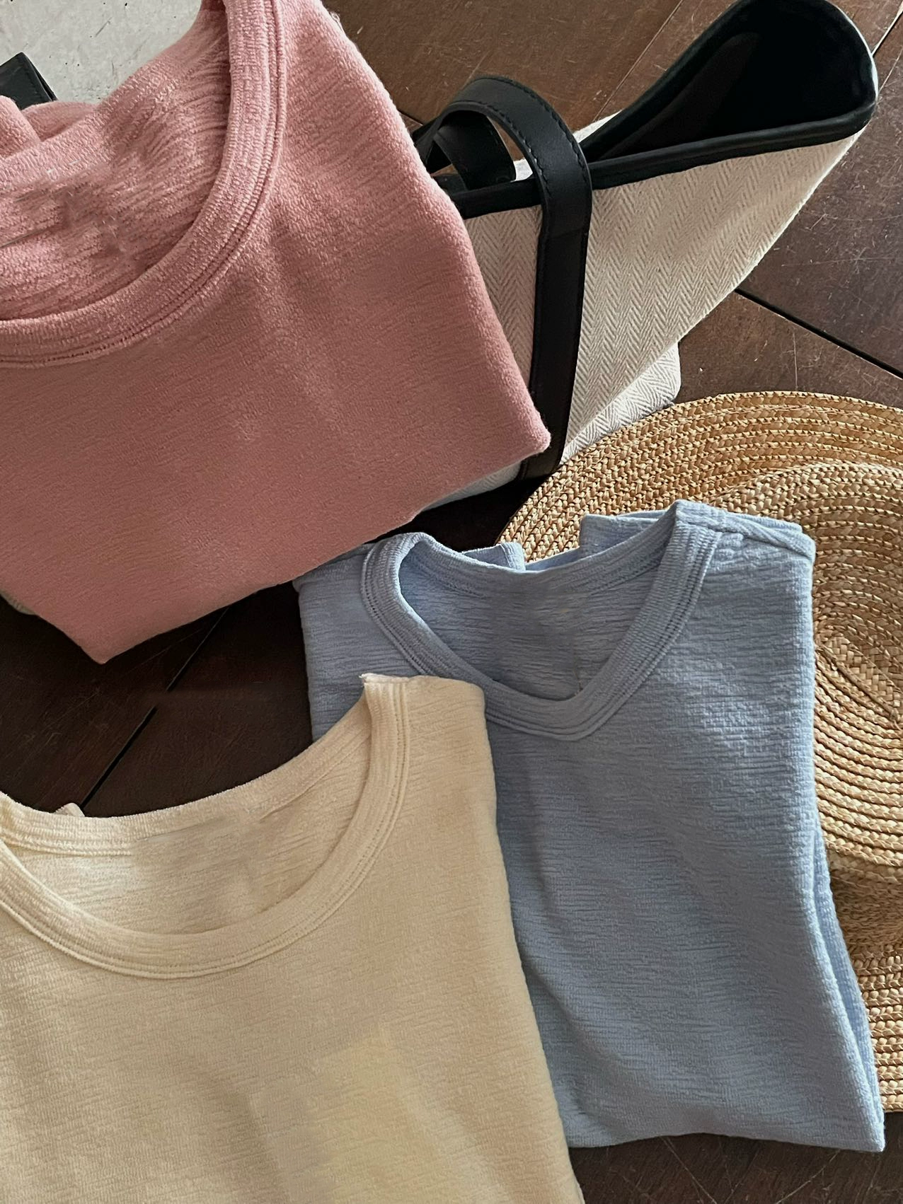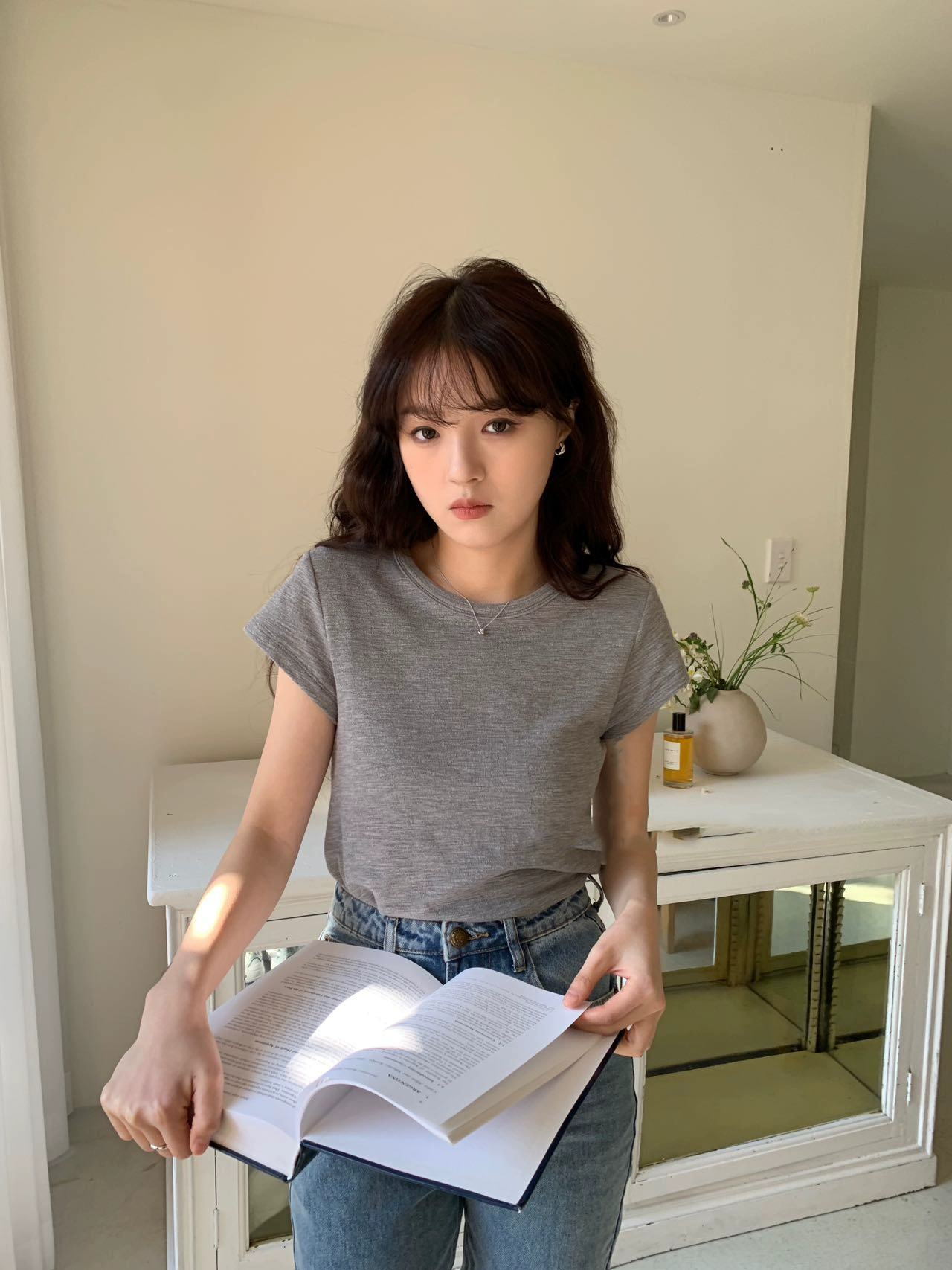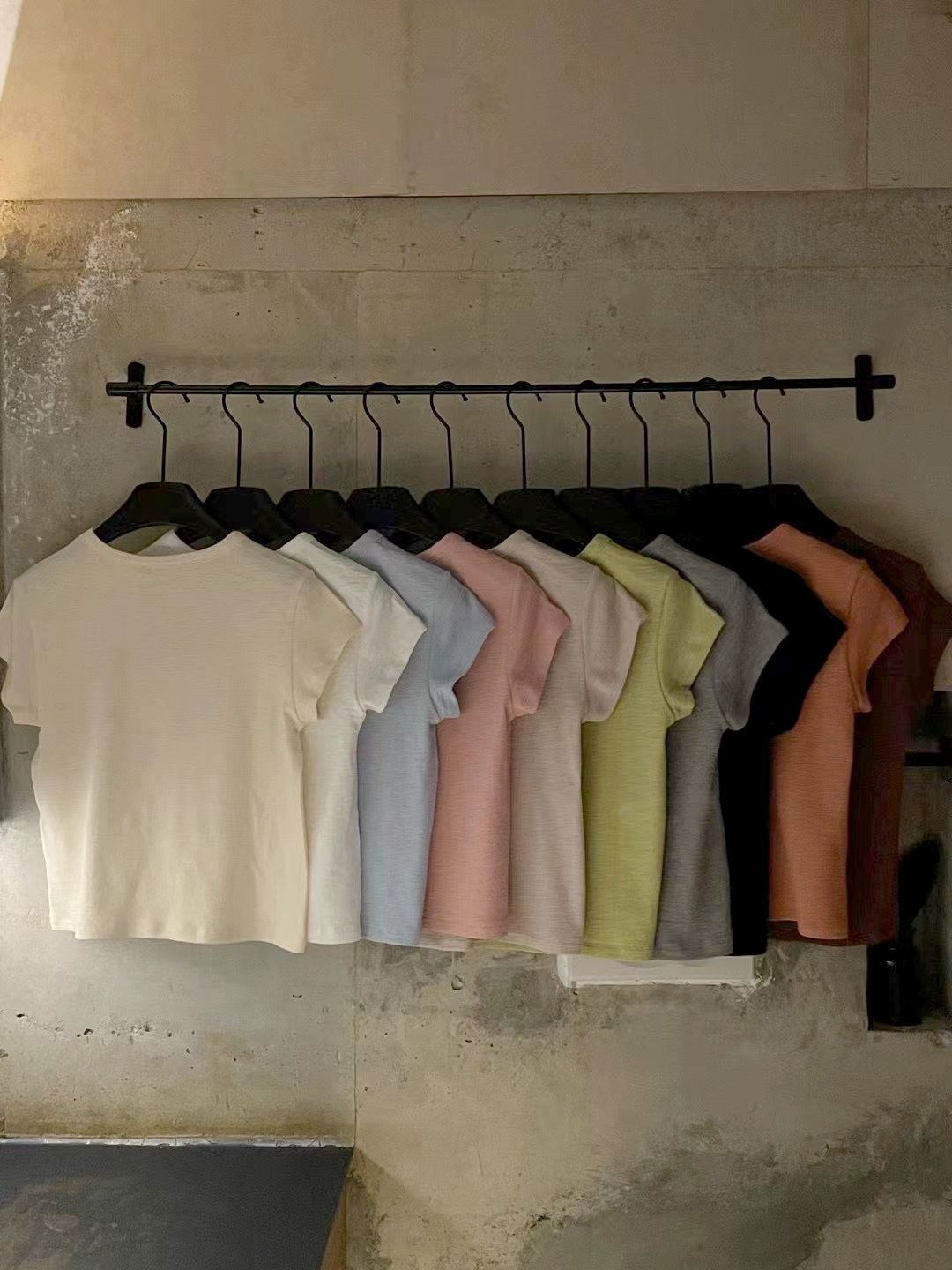 Solid color loose straight waisted round neck short-sleeved T-shirt
