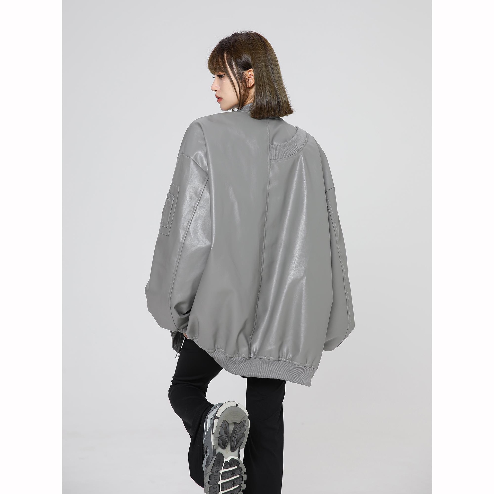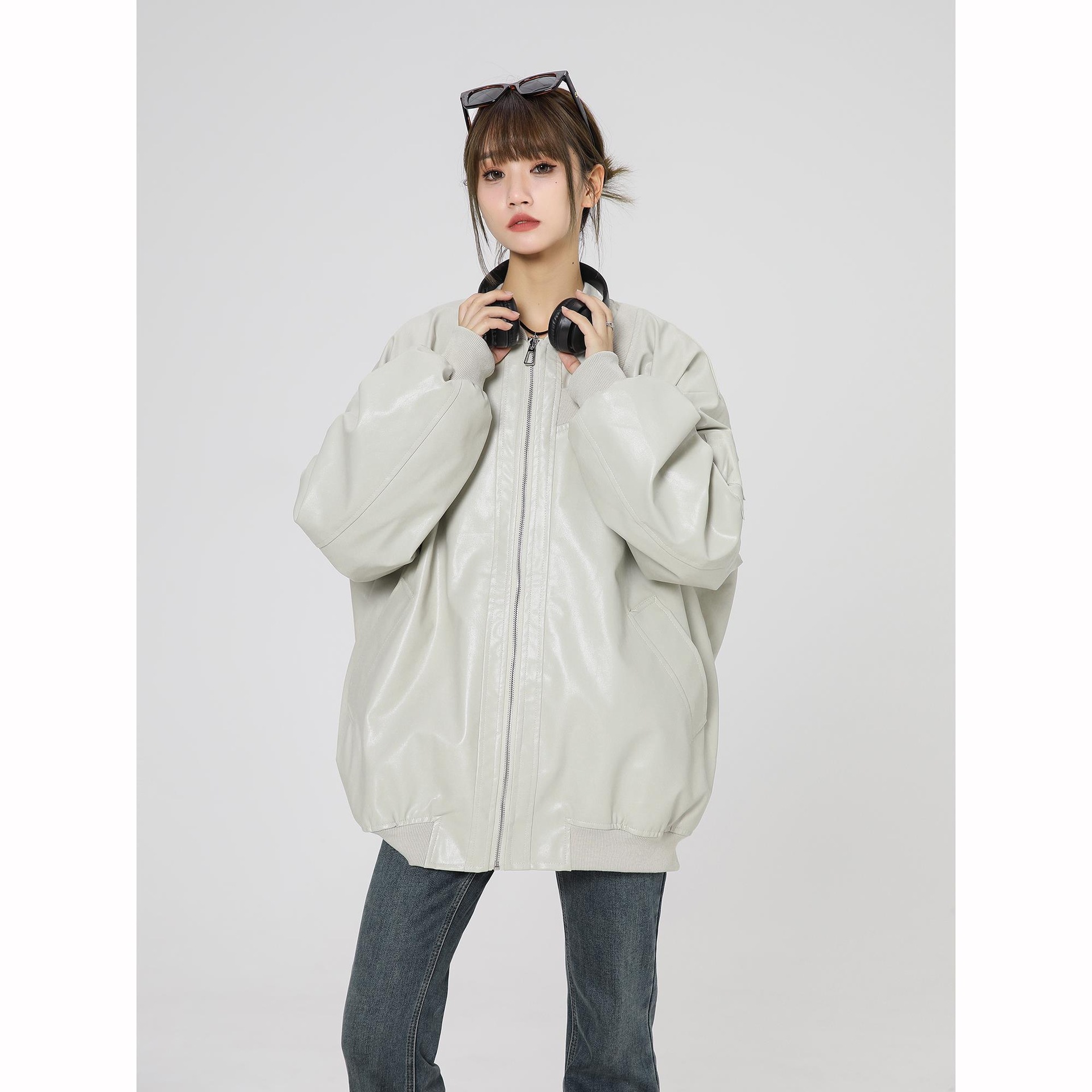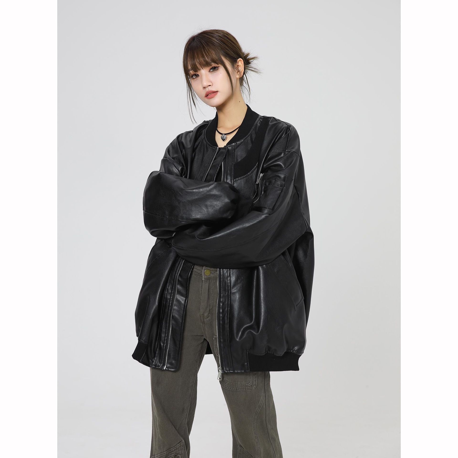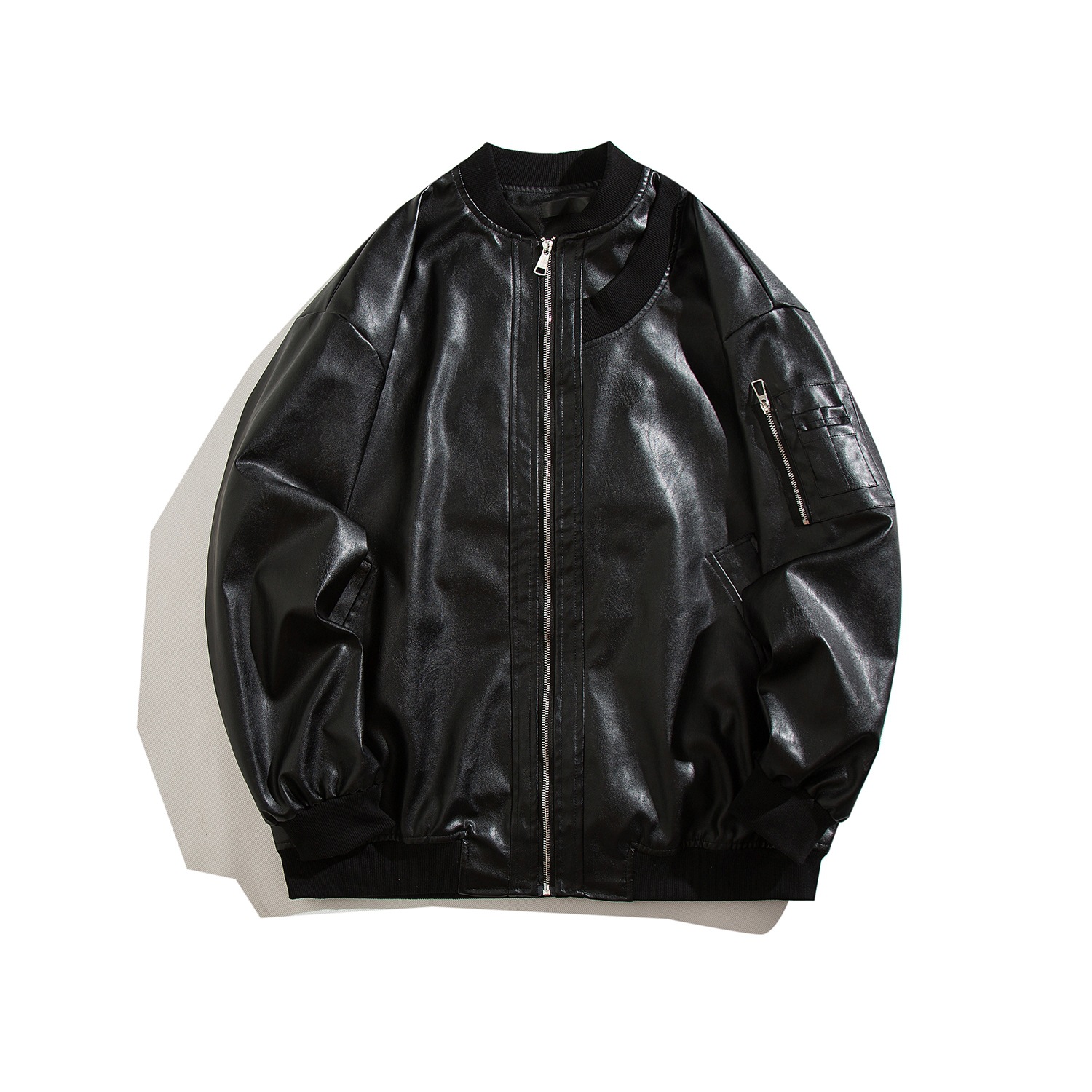 | nameOriginal | Solid Color PU Leather Baseball Suit Jacket European and American Cold Style Flying Suit Simple Loose Slimming All-match Casual Jacket |