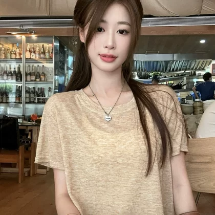 | nameOriginal | Solid color right shoulder summer loose casual short-sleeved T-shirt |