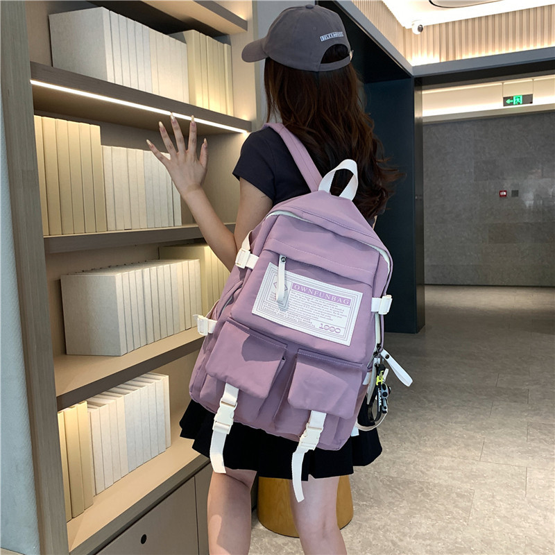 Solid Color Schoolbag Women’s Simple Japanese Ins Style Design Sense Large Capacity Backpack for Junior High School and High School Students Travel Backpack