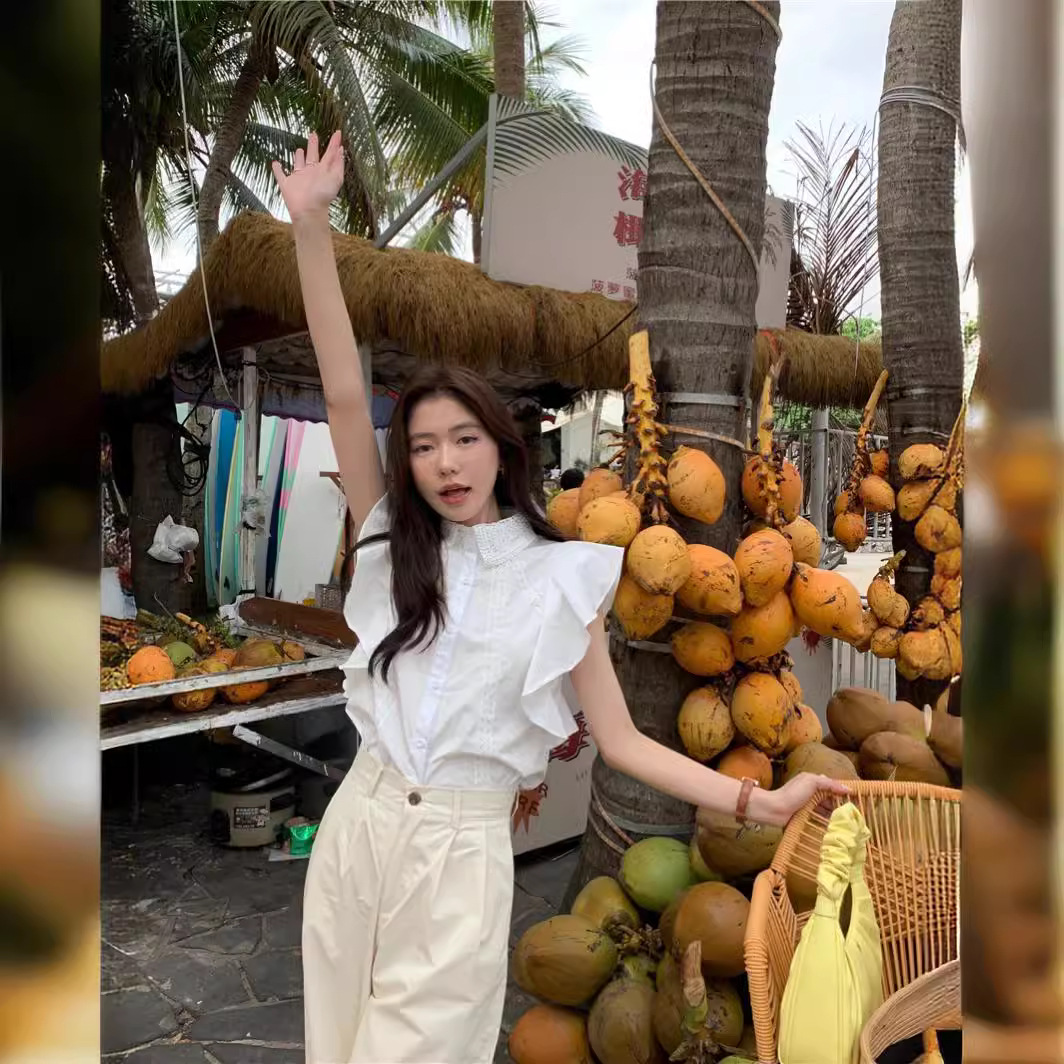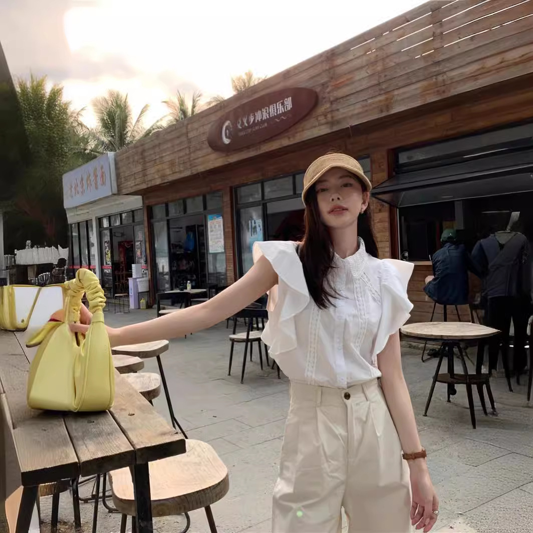 | nameOriginal | Solid color short sleeve shirt women's summer French lace design sense stitching small fly sleeve loose commuter shirt wholesale |