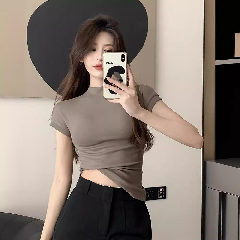 | nameOriginal | Solid color short-sleeved T-shirt Women's Small short top 2023 new spring and summer inner wear summer |