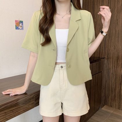| nameOriginal | Solid Color Short Suit Jacket Women's Autumn Thin 2023 New Short Sleeve Korean Style Loose V-neck Small Suit Top |