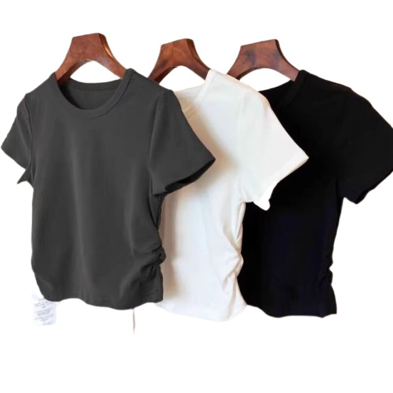 | nameOriginal | Solid Color Shoulder Short-sleeved Shirt Women's 2024 New Slim-fit Slimming Design Sense Niche Chic Top for Summer |