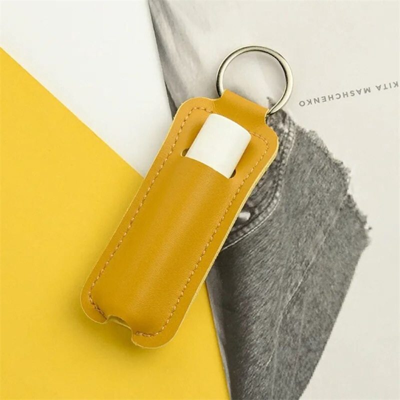 Solid Color Simple Lipstick Storage Bag PU Leather Portable Keychain Lipstick Storage Bag Exquisite Bag Pendant Accessories