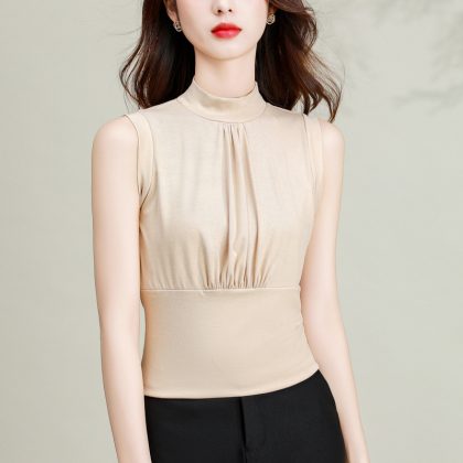 Solid Color Simple Modal Half High Neck Inner Wearing Outer Wearing Base Vest Women’s 2024 Summer New Fashionable Slim Look Trendy