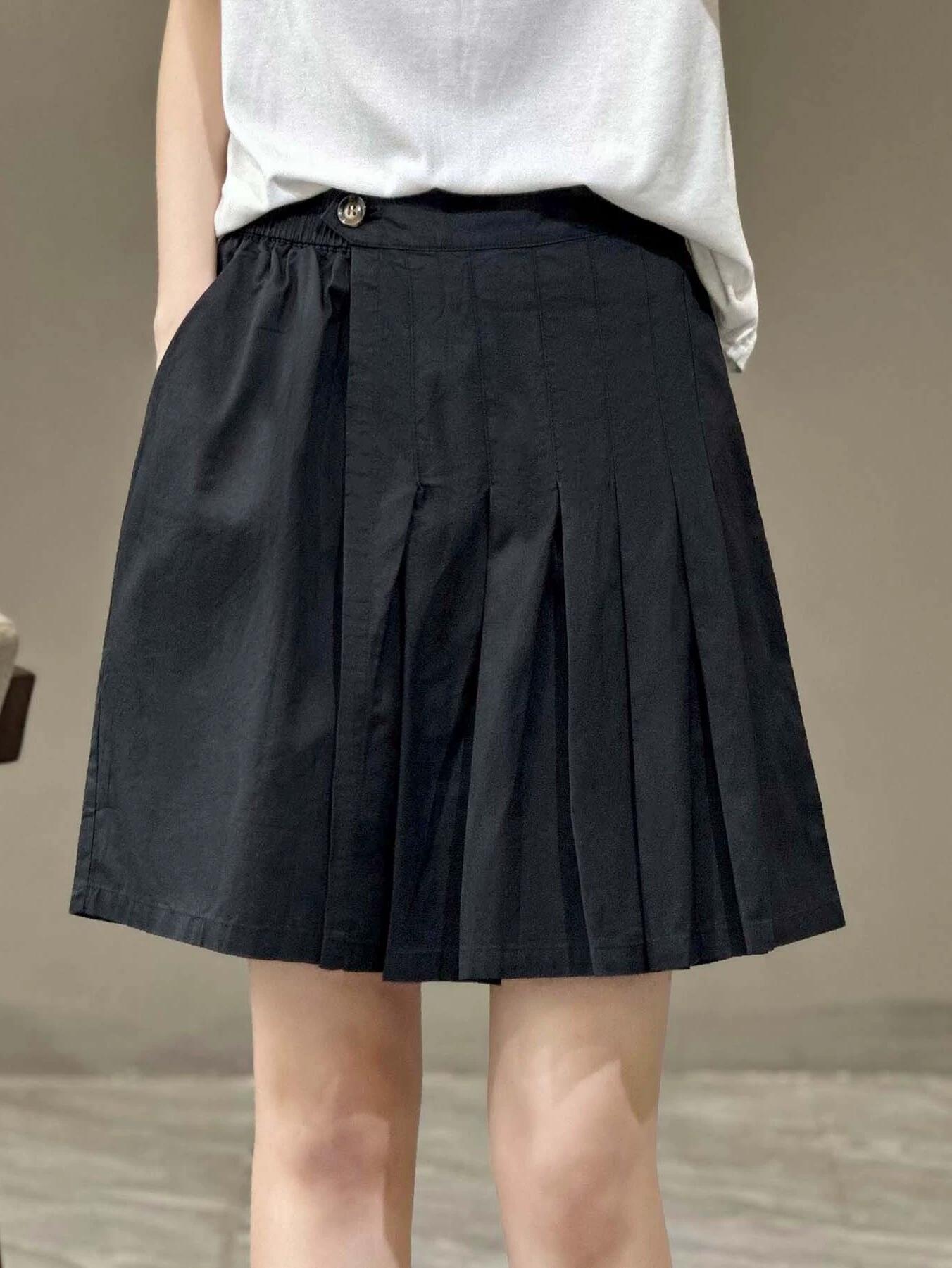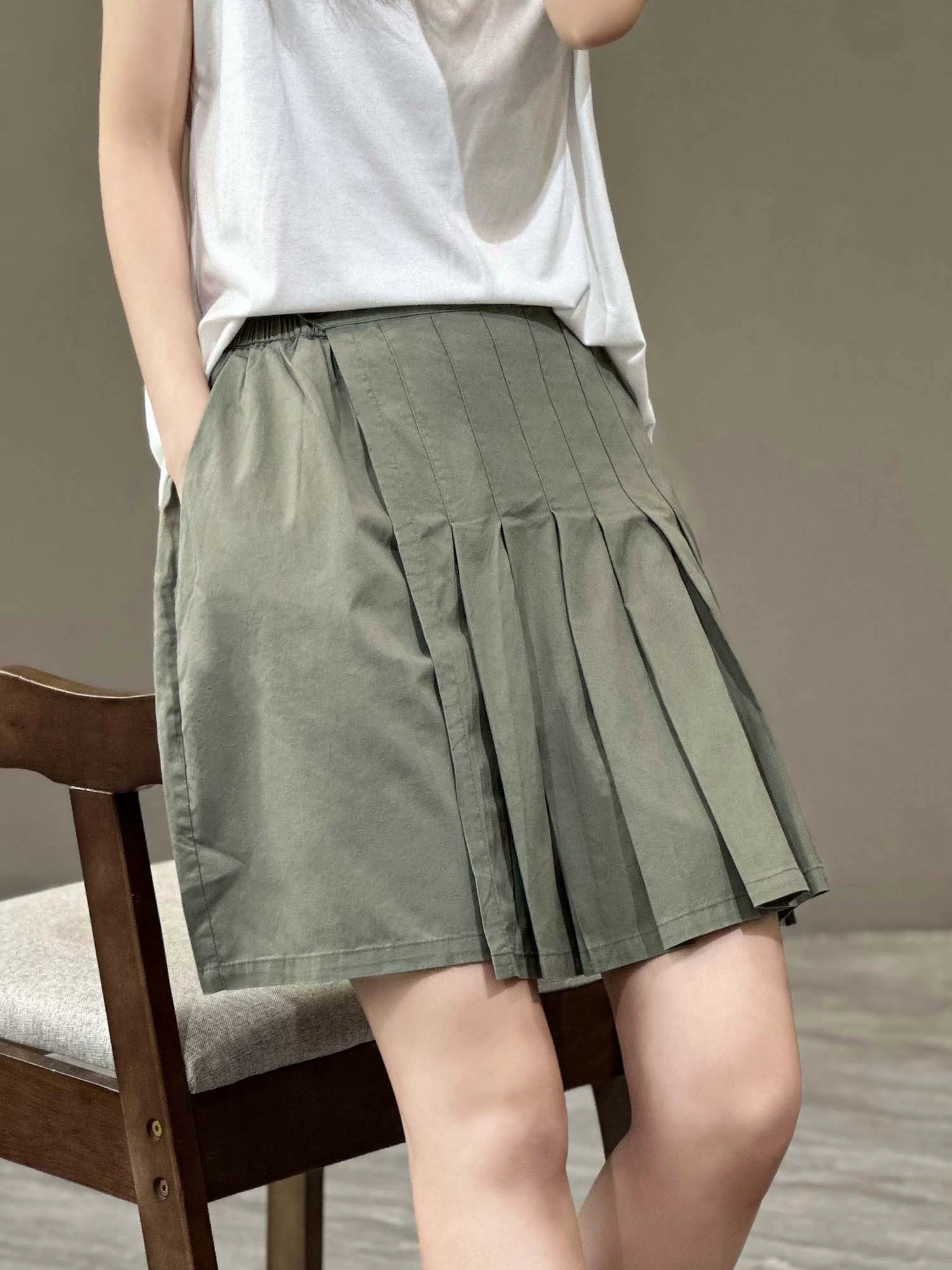 | nameOriginal | Solid color simple pleated thin loose slimming shorts |