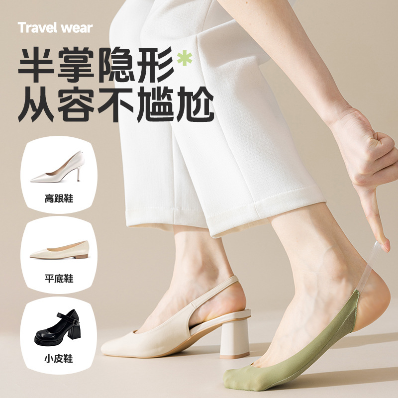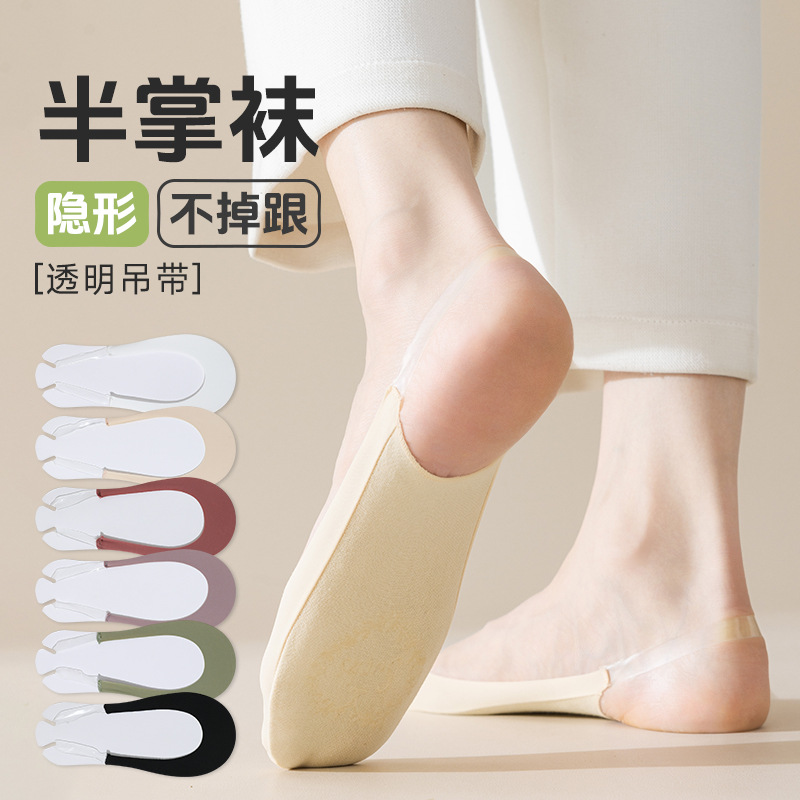 | nameOriginal | Solid Color Simple Transparent Sling Half-Palm Socks with High Heels Invisible Socks Moisture Absorption Non-slip Non-dropping Boat Socks for Women |