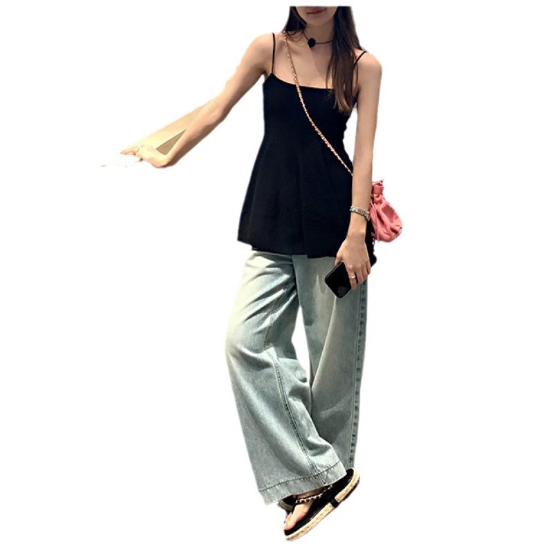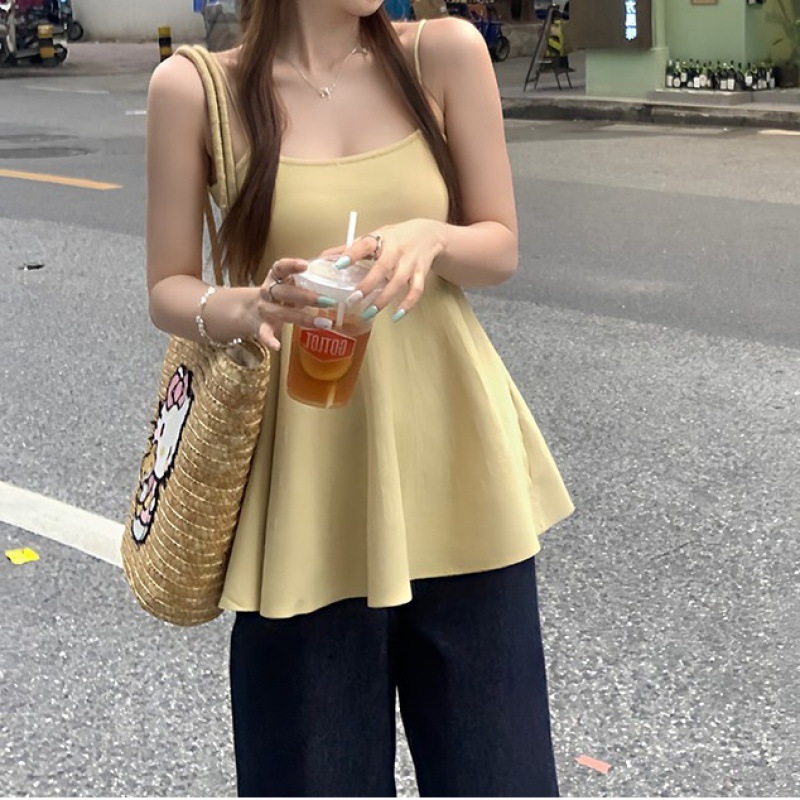 | nameOriginal | Solid Color Sleeveless Sling Knitted Vest Women's Design Sense 2024 Summer New Slimming Vacation Style Small Top |