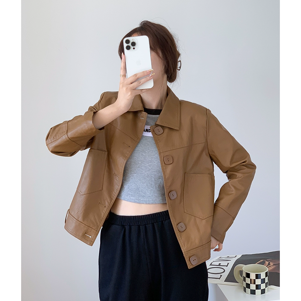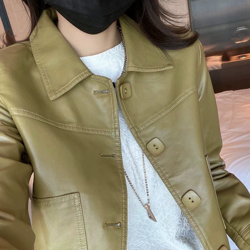 | nameOriginal | Solid color slim button fashionable design lapel leather jacket |
