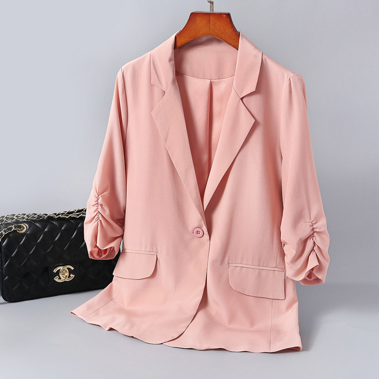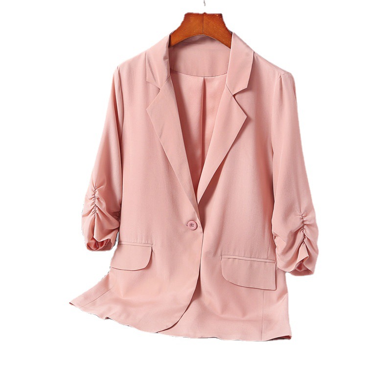 | nameOriginal | Solid Color Slim-fit Elegant Fashion Stitching Small Jacket Seven-sleeve Suit Collar One-button Small Suit Women's Summer Women's Clothing |