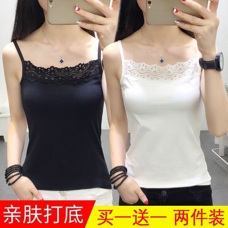 Solid Color Sling Women’s Lace Thin Base Shirt 1-2 Pieces Short Slim Fit Inner Wear Spice Sling Shirt