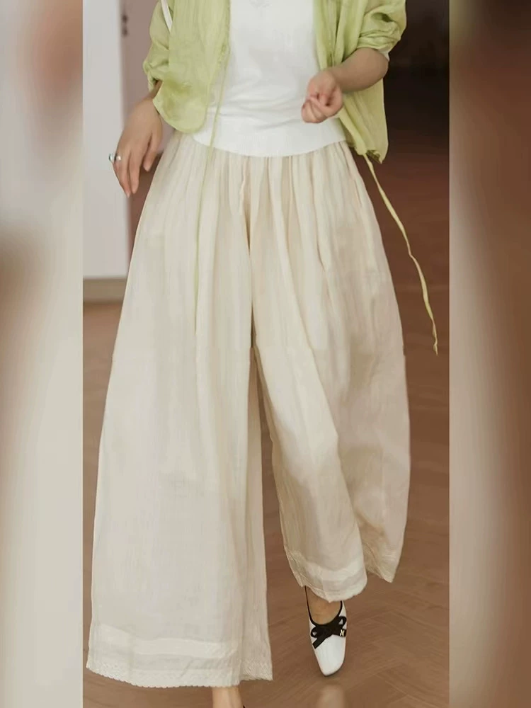 | nameOriginal | Solid color spring and summer loose slimming trousers cotton and linen lace |