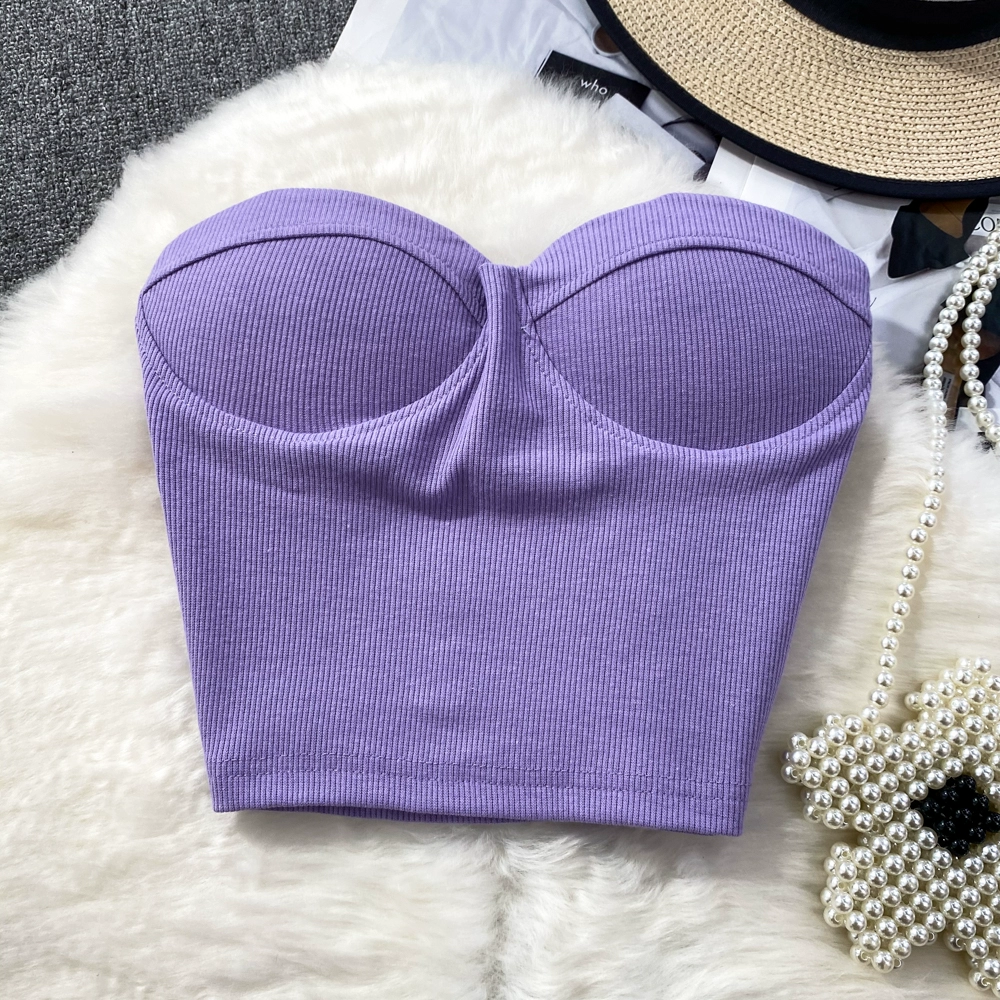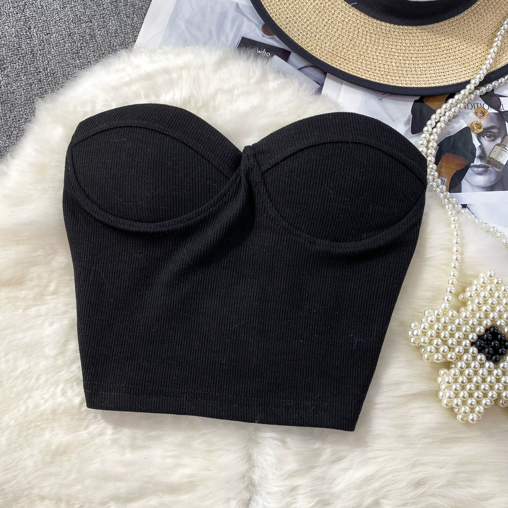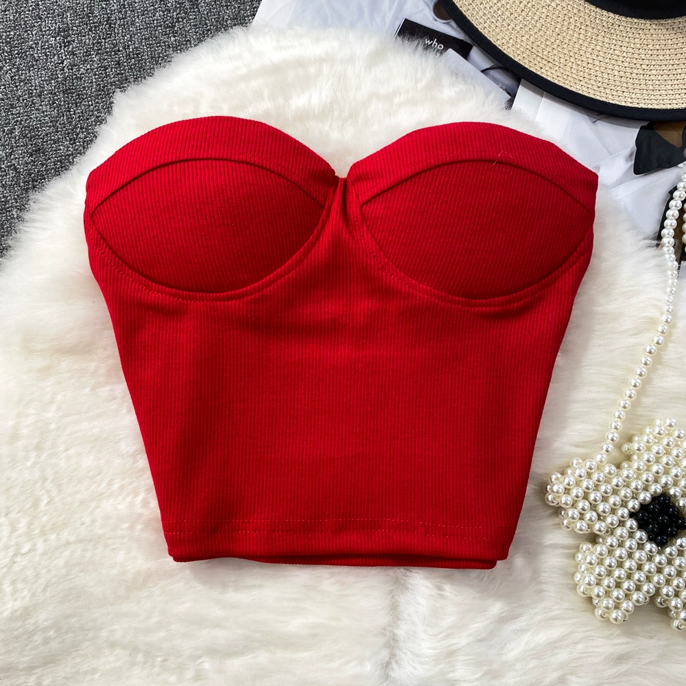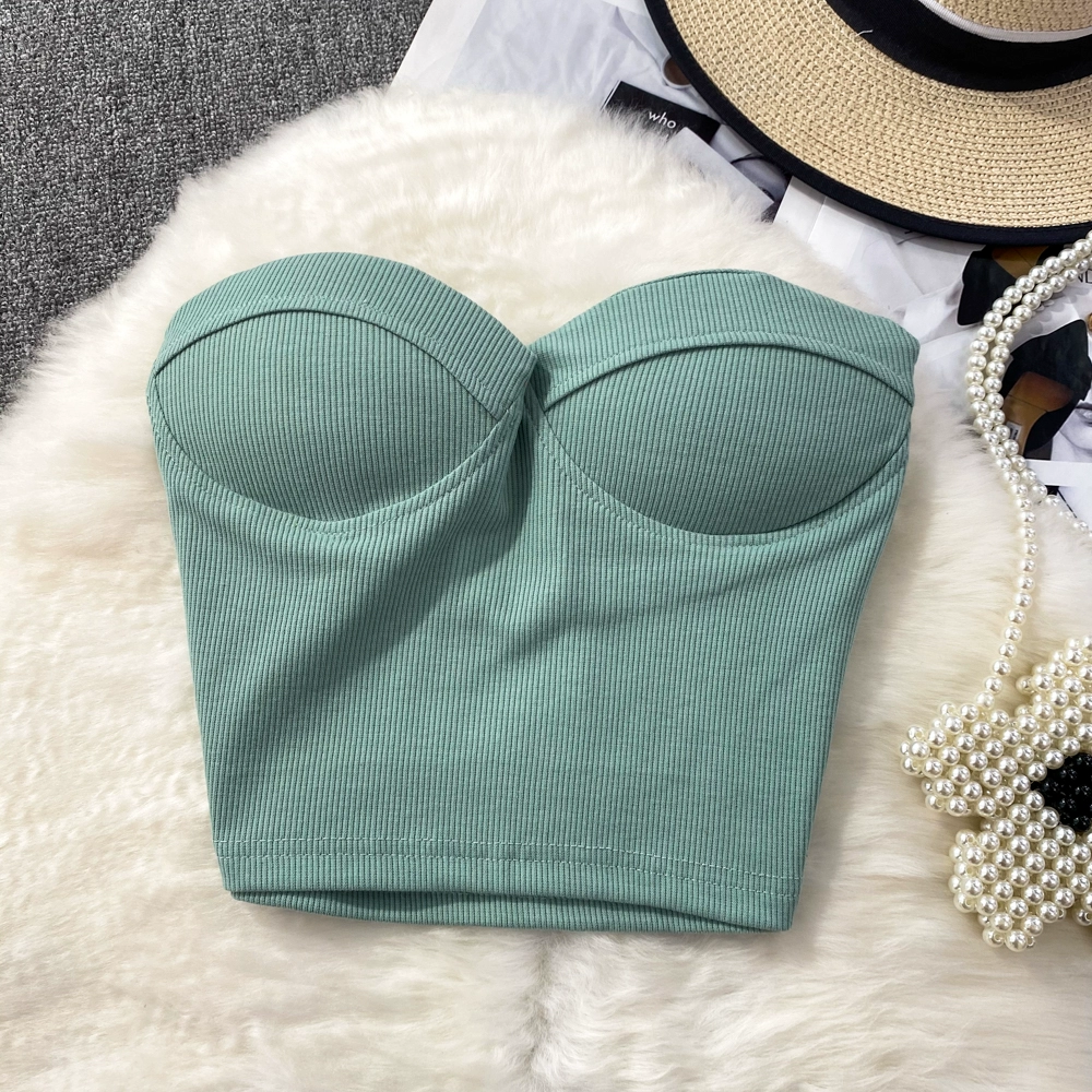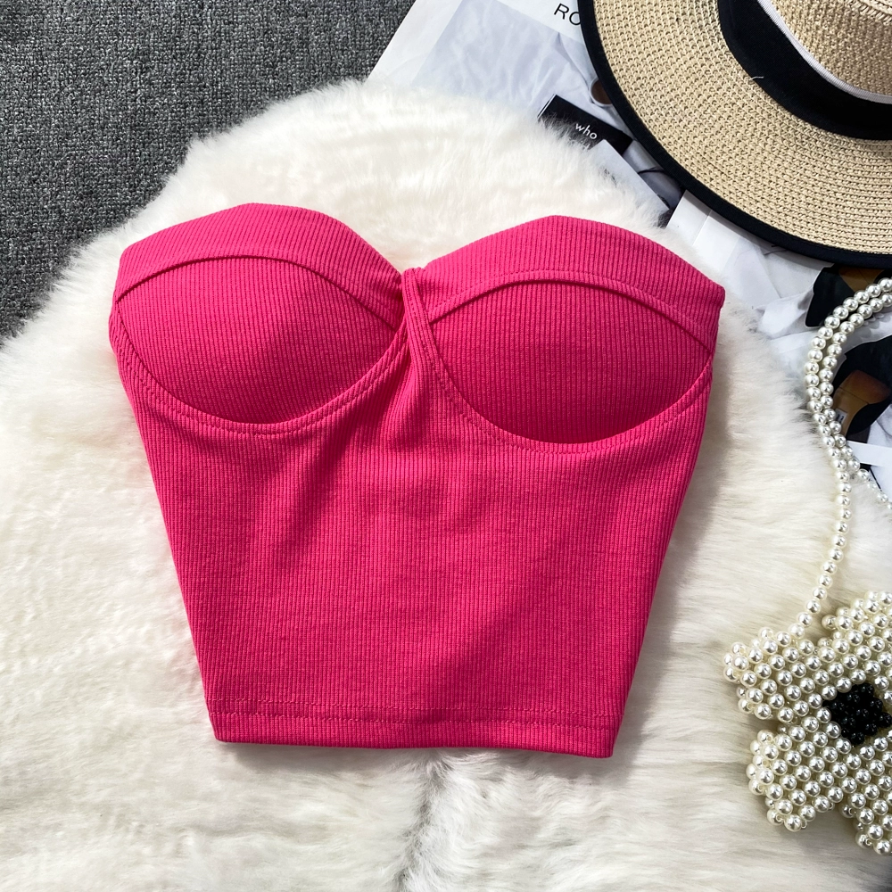 Solid color strapless tube top for women to wear as sexy hottie short navel-baring slim fit top with breast pads