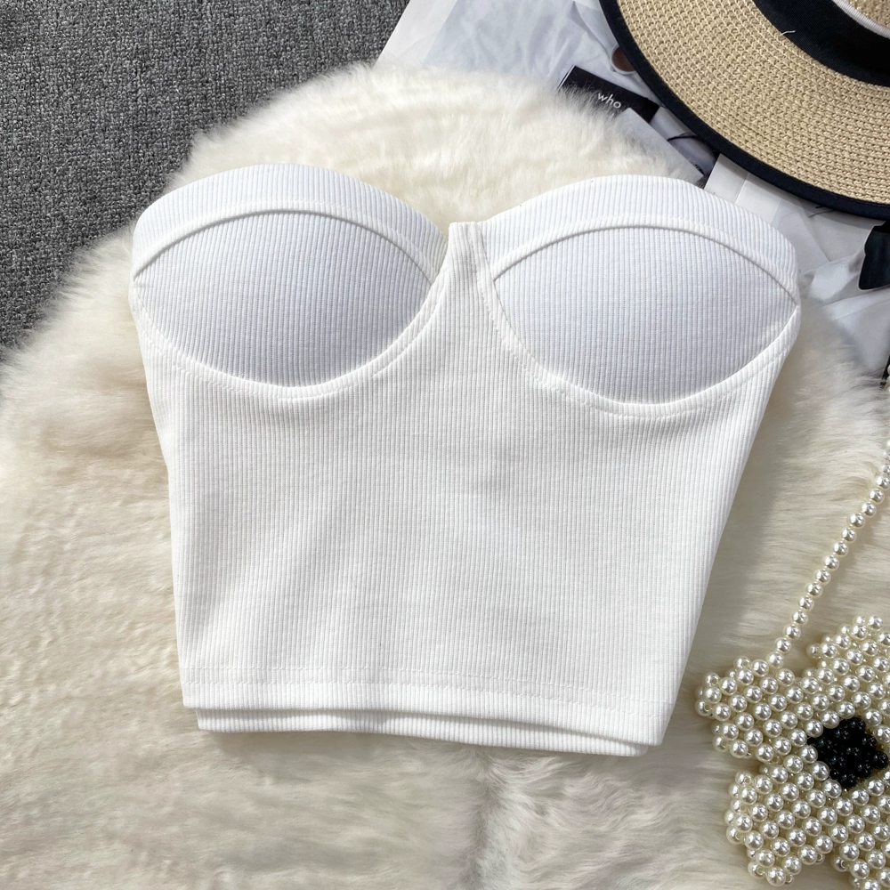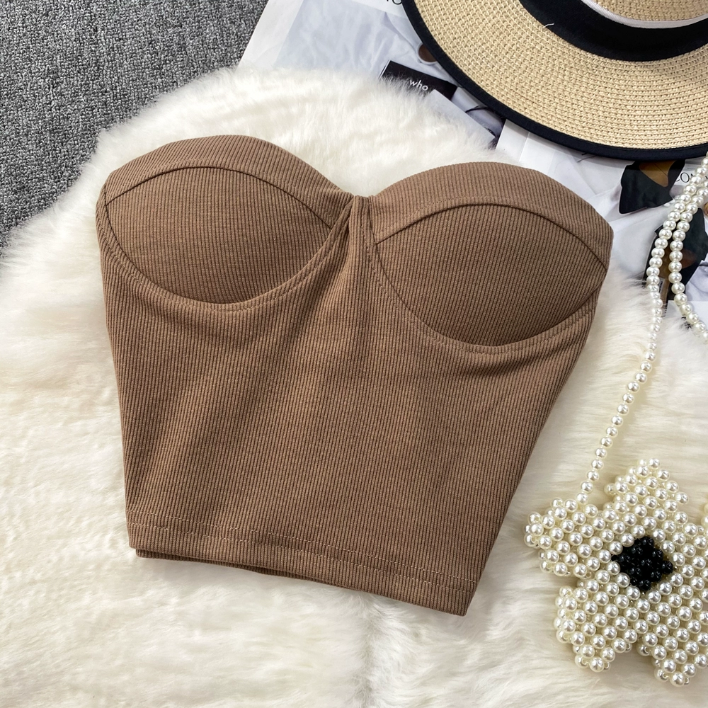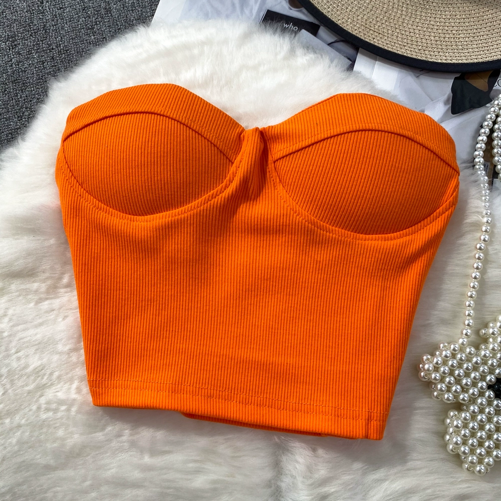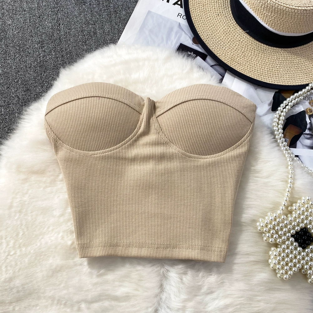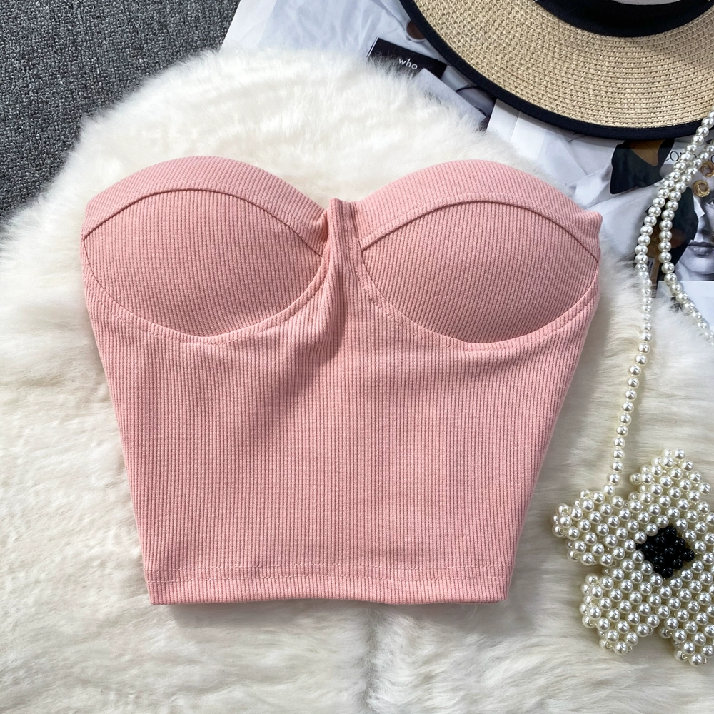 Solid color strapless tube top for women to wear as sexy hottie short navel-baring slim fit top with breast pads
