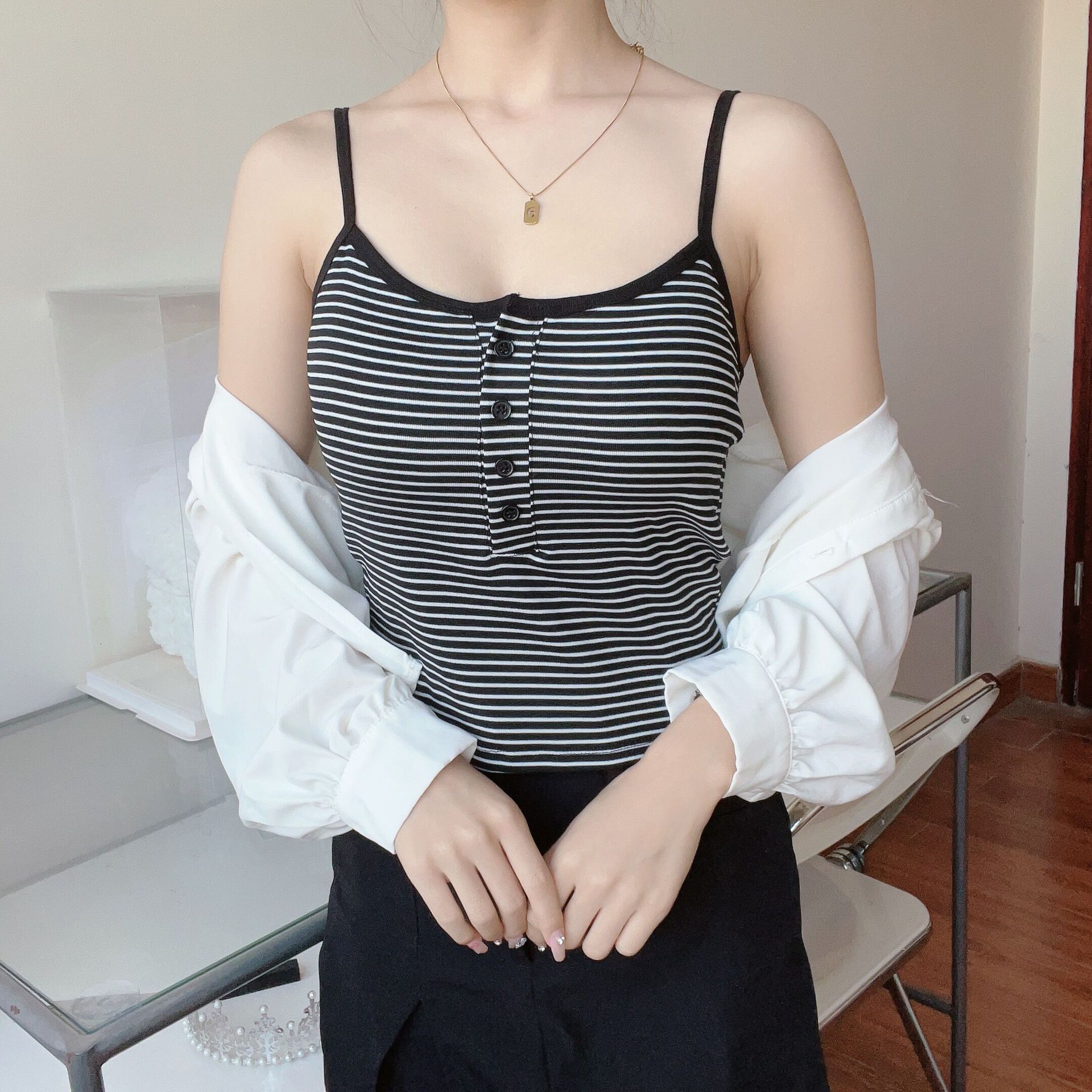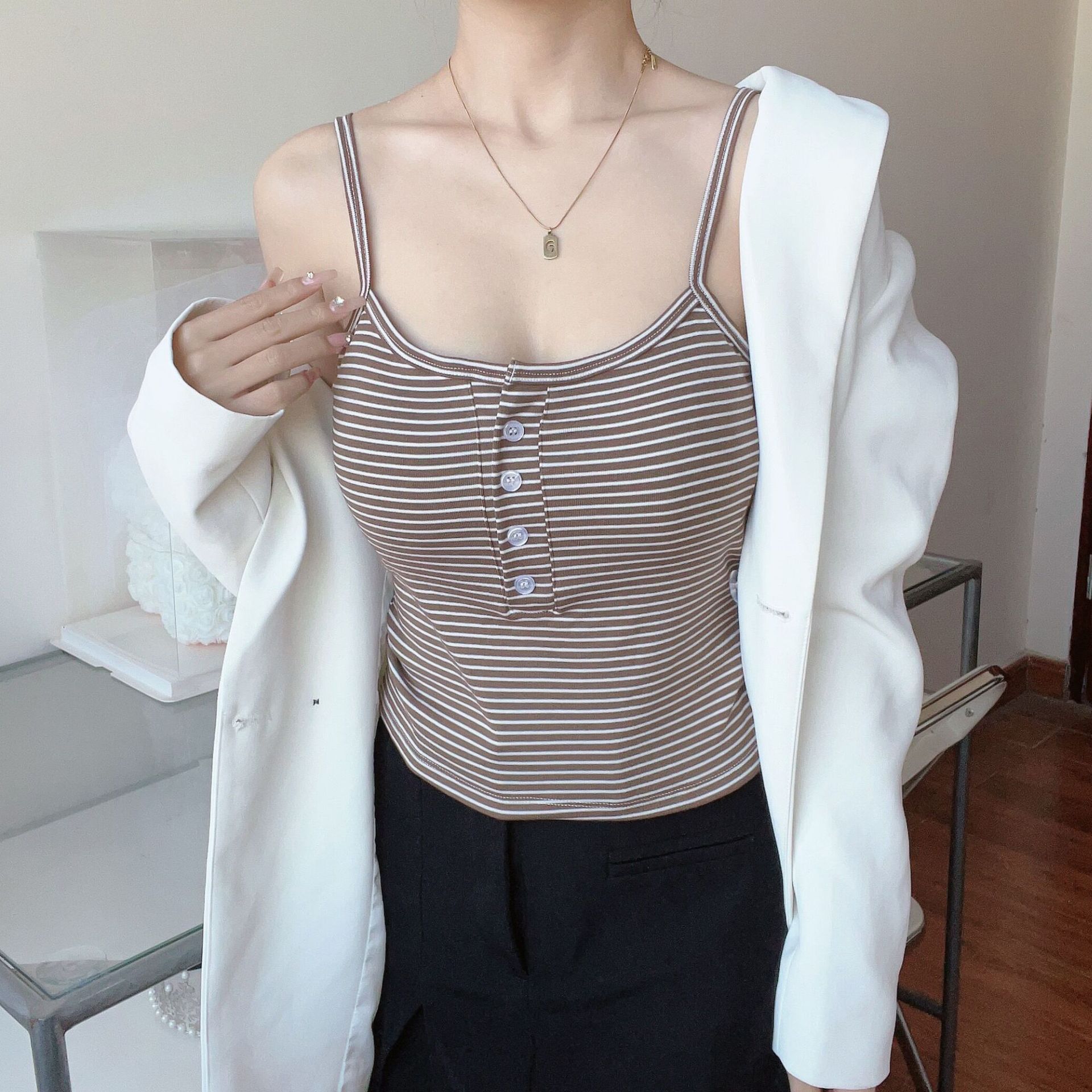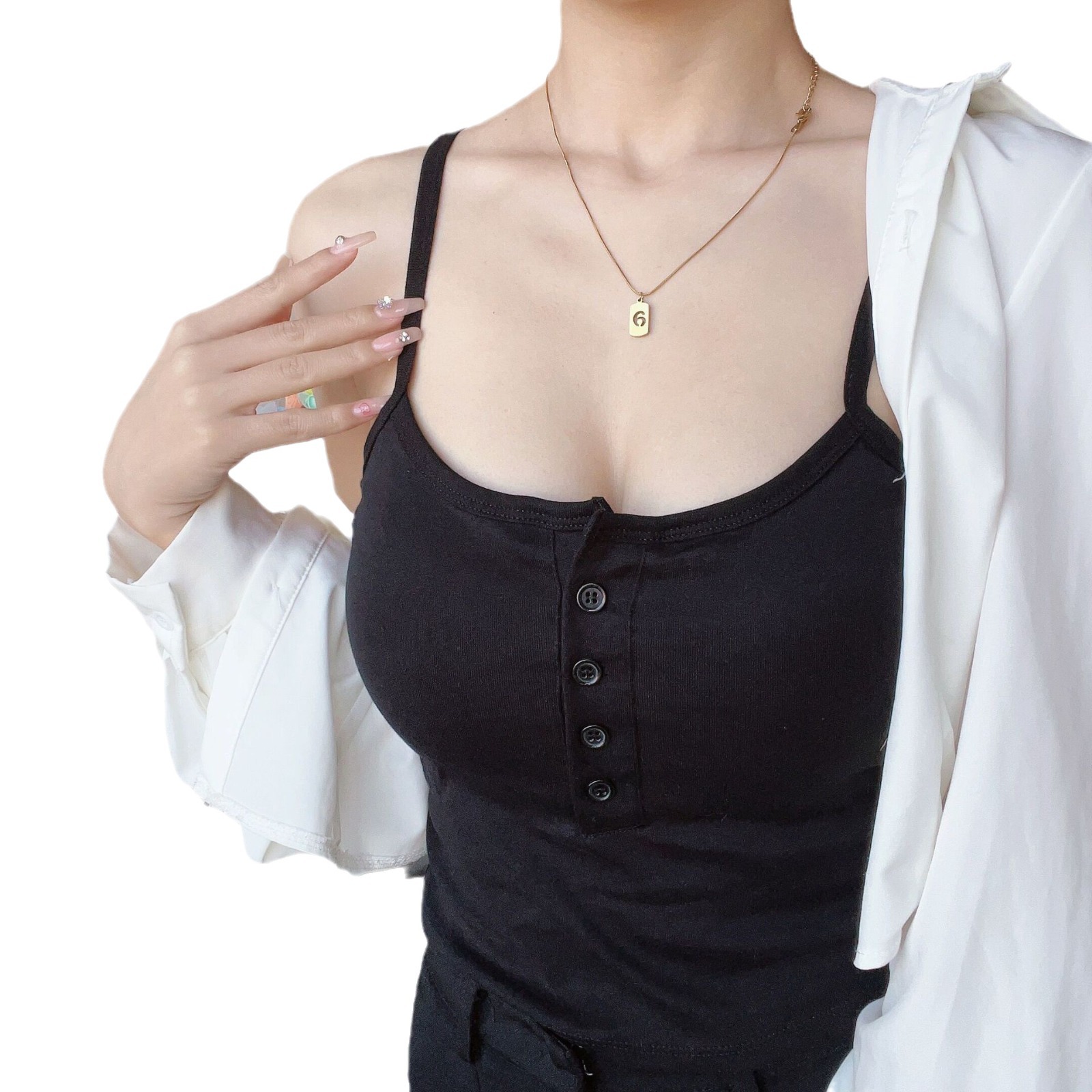 Solid color striped button design small camisole hot girl inner wear with chest pad tube top slimming all-match bottoming top