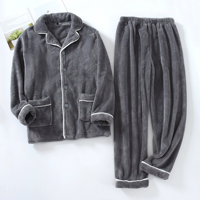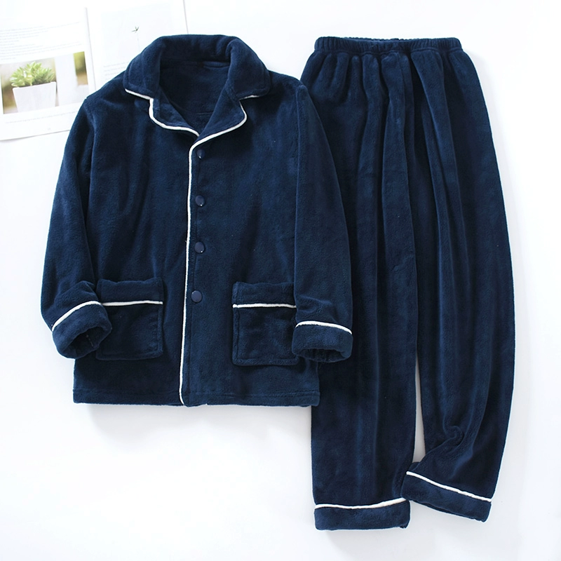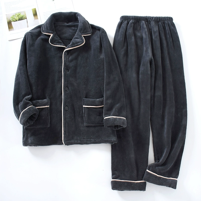 | nameOriginal | Solid color thickened warm coral velvet men's pajamas autumn and winter plus velvet loose cardigan long-sleeved flannel home clothes |