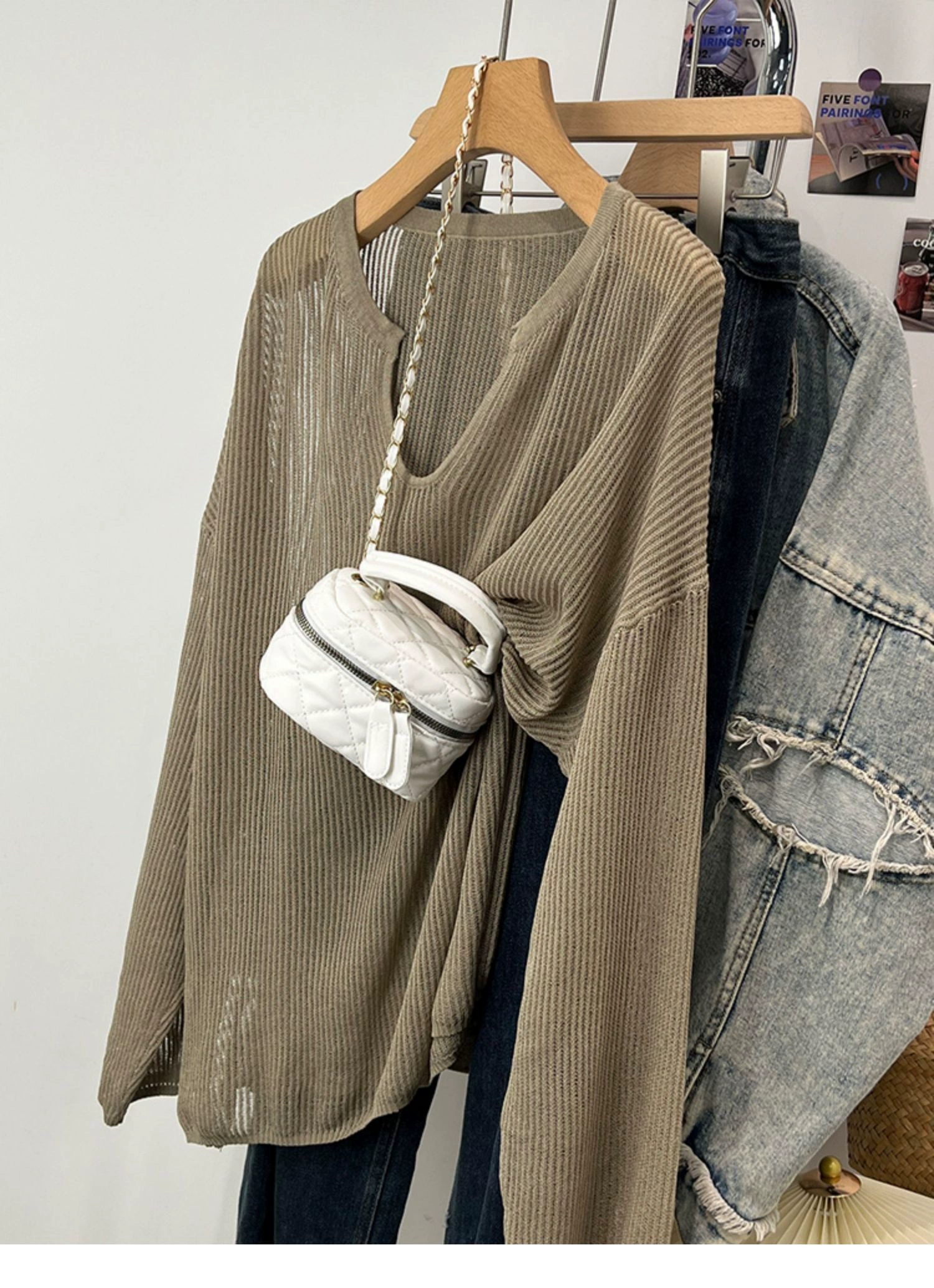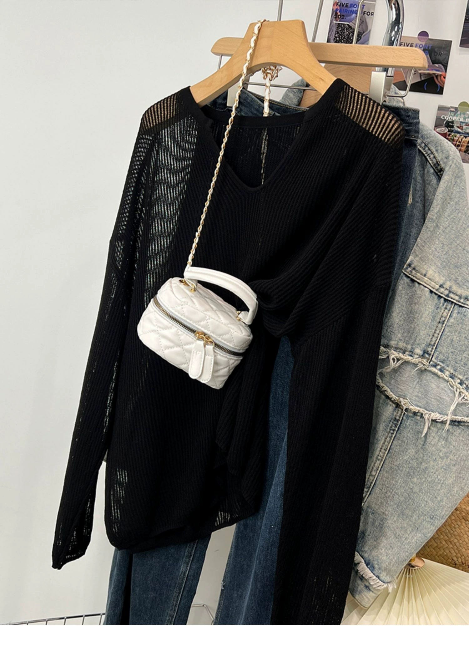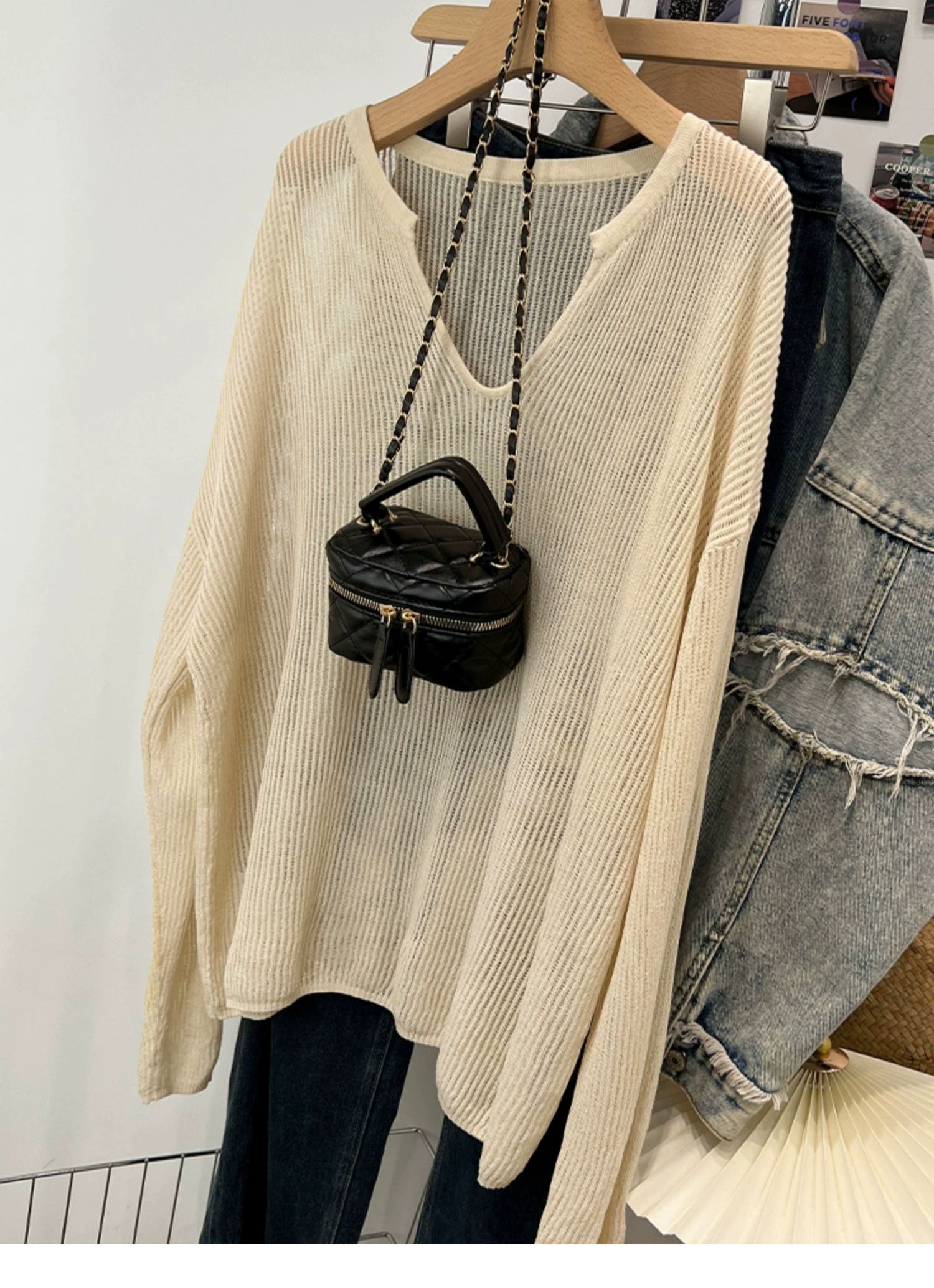 Pure color thin sunscreen shirt female Korean version 2024 summer new loose V -neck long sleeve hollow hollow tempera