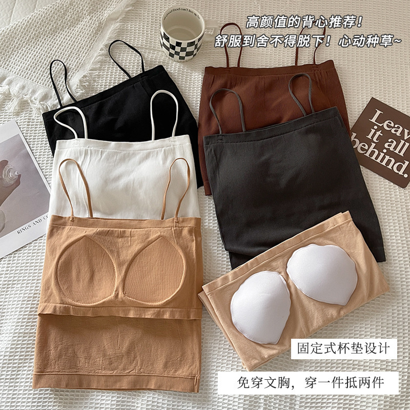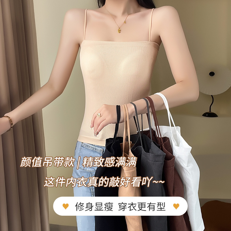 | nameOriginal | Solid Color Thread Sling Beauty Back Vest One-piece Casual Spice Girl Simple Top with Chest Pad |