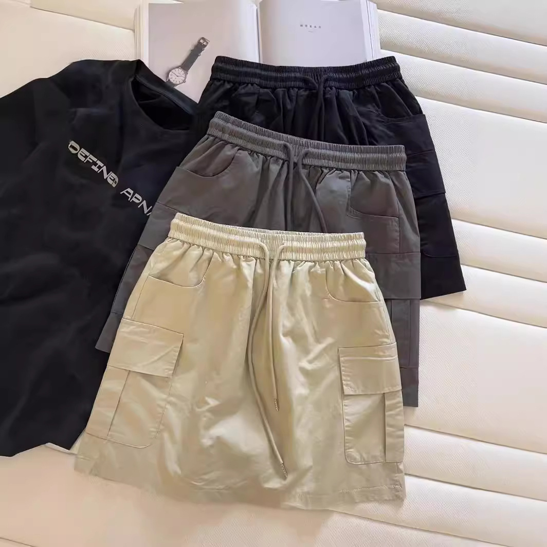 | nameOriginal | Solid Color Tooling Style Skirt Women's Summer Drawstring Loose Waist All-match Slim Look High Waist Pocket Cotton A- Line Skirt |