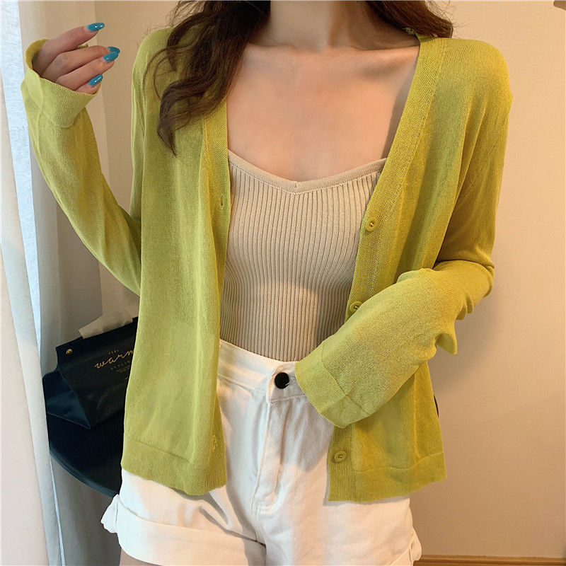 | nameOriginal | Solid color V-neck Ice Silk sunscreen cardigan for women 2023 Summer Korean style loose air conditioning shirt outdoor casual coat top |
