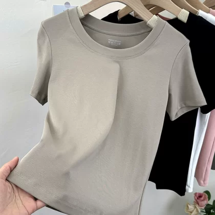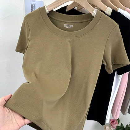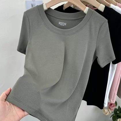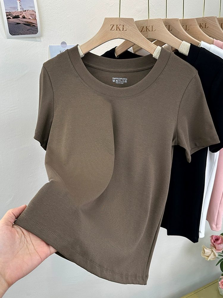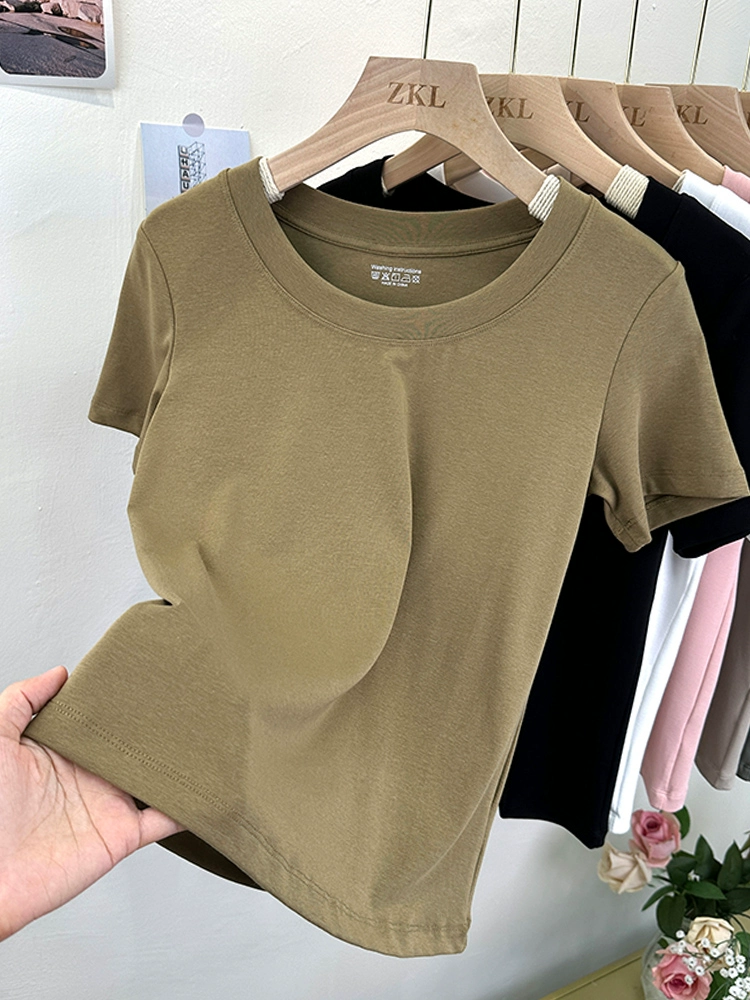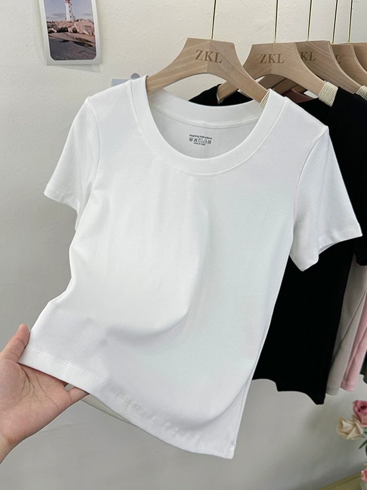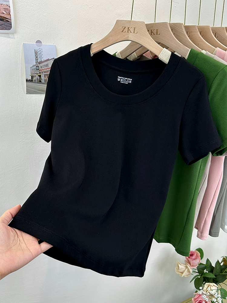 | nameOriginal | Solid Color Versatile Right Shoulder Summer Round Neck Short Sleeve T-Shirt |