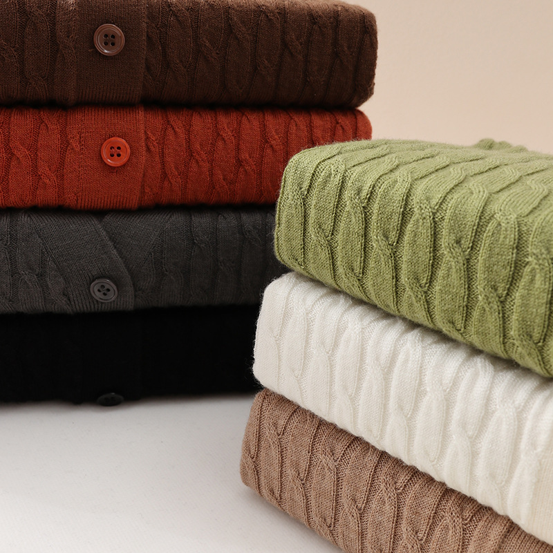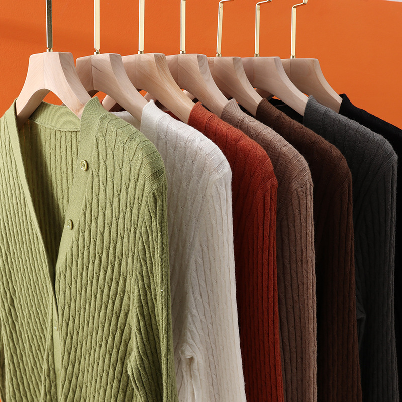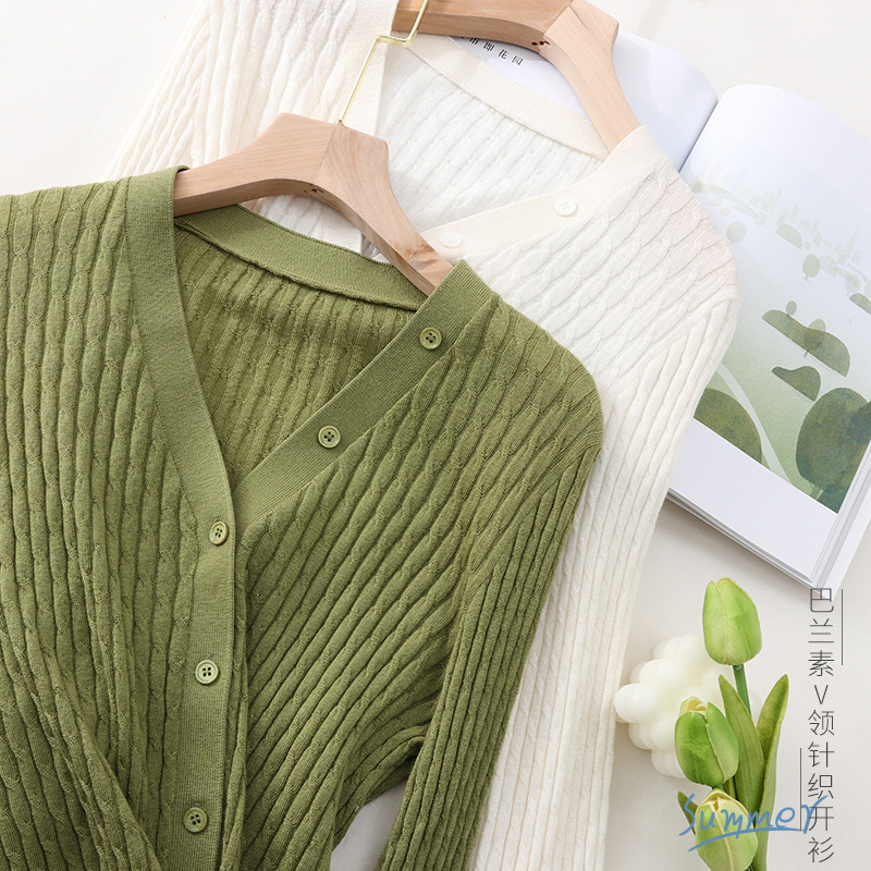 | nameOriginal | Solid Color Vertical Strand Twisted Flower Design 2024 Maillard Style New V-Neck Slim Knitted Cardigan for Women |
