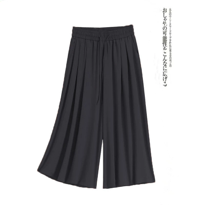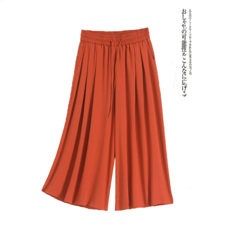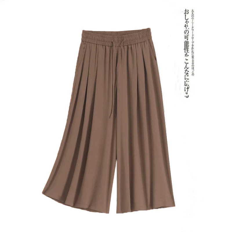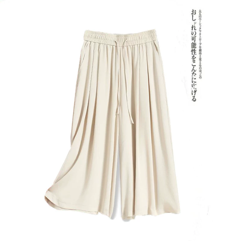 Solid Color Women's Cropped Big Leg Loose Pants Tencel Linen