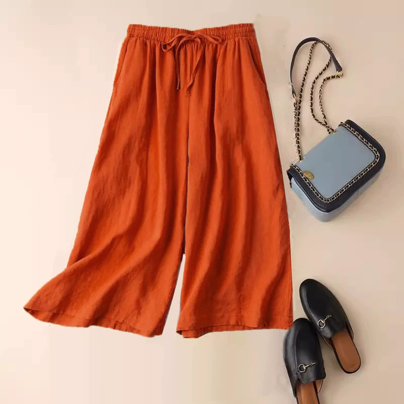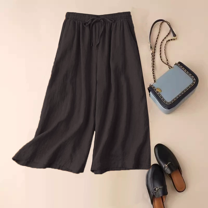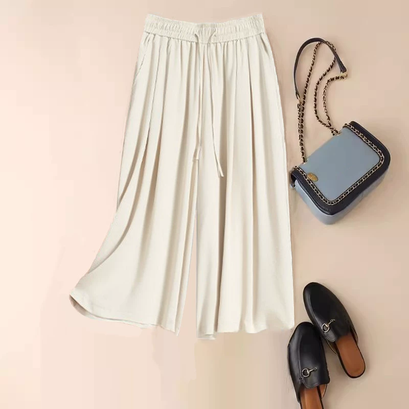 | nameOriginal | Solid color women's three-quarter draped loose wide-leg pants for big feet |