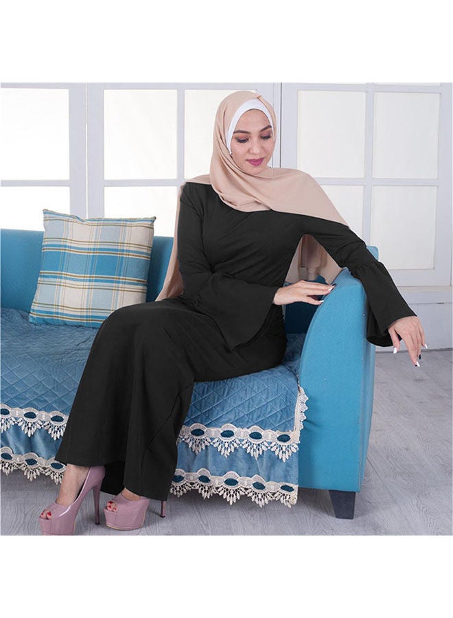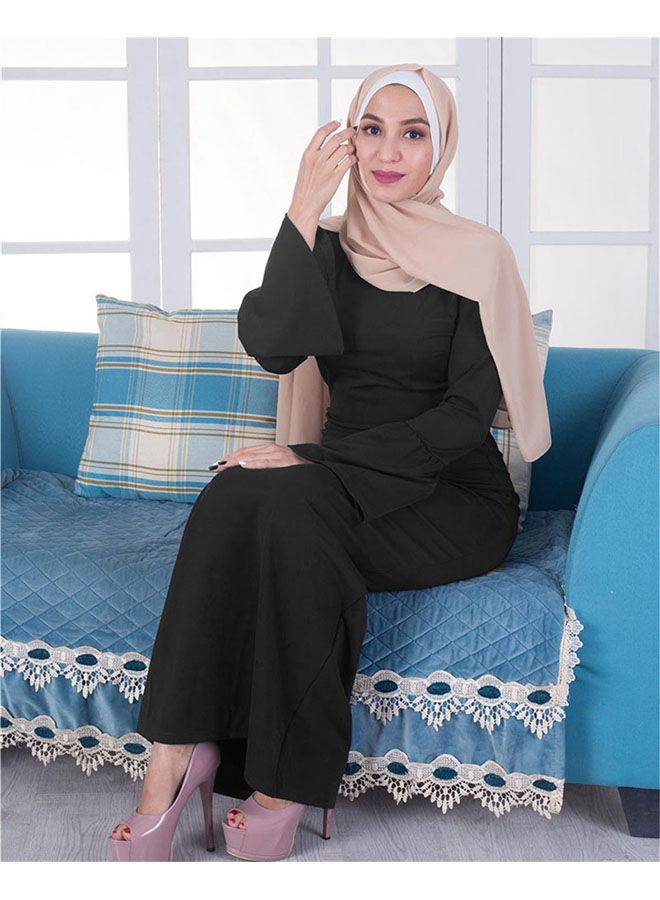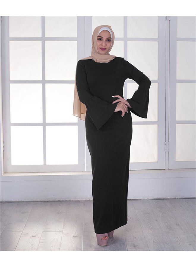 This dress is made of a blend of cotton and polyester, resulting in a soft, comfortable, breathable, lightweight, and stretchy fabric. It features a round neck, long sleeves, flared sleeves, ankle-length, and a zipper closure at the back. This dress is perfect for daily wear in the Middle East, as it is made of high-quality fabric and has a smooth cut. It can be worn for various occasions such as shopping, school, travel, work, and more. You can pair it with shoes, high-heeled shoes, boots, or coats during the cold winter to create a different and beautiful look. It is suitable for leisure, pregnancy, wedding, party, vacation, street clothing, and daily life. The dress has a stylish and minimalist silhouette that can be paired with dazzling accessories to create a beautiful landscape.