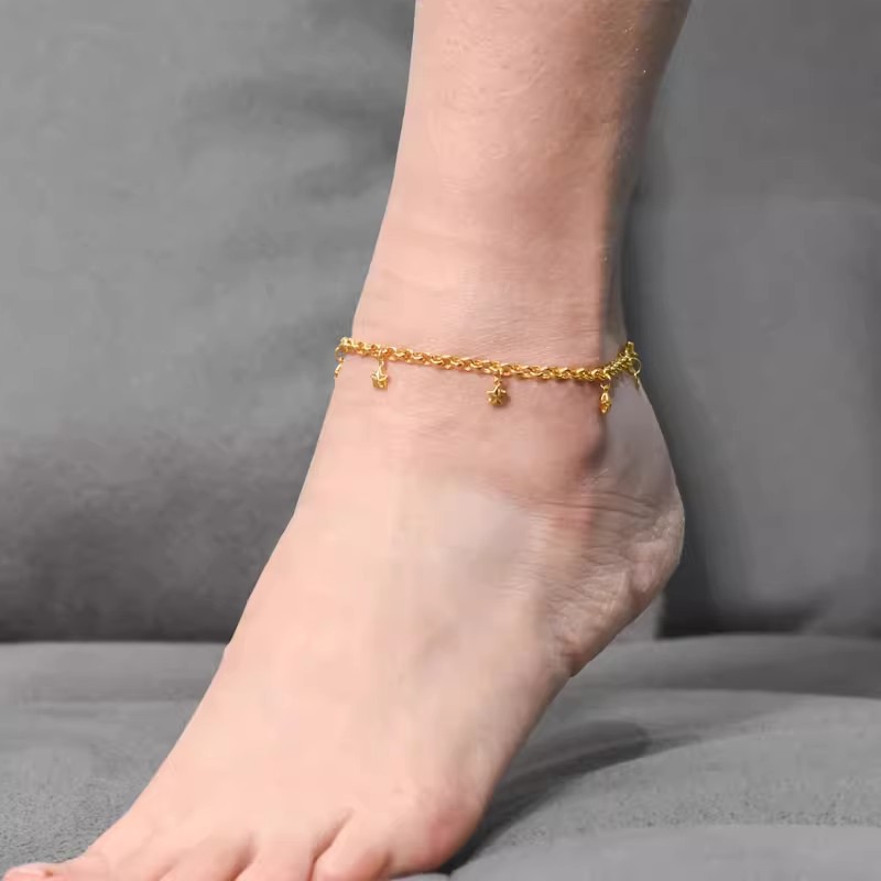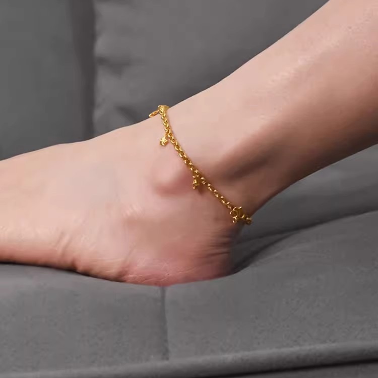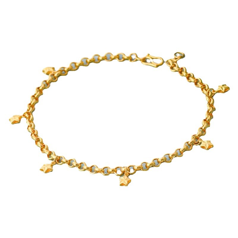 | nameOriginal | Solid pearl chain double-sided star anklet plated 18k gold-plated three-star women's light luxury niche anklet new foot chain |
