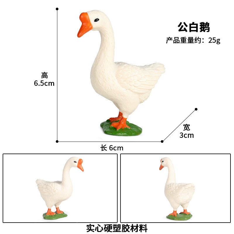 | nameOriginal | Solid simulation wild animal model white swan chicken duck goose farm poultry children's toys cognitive set ornaments |