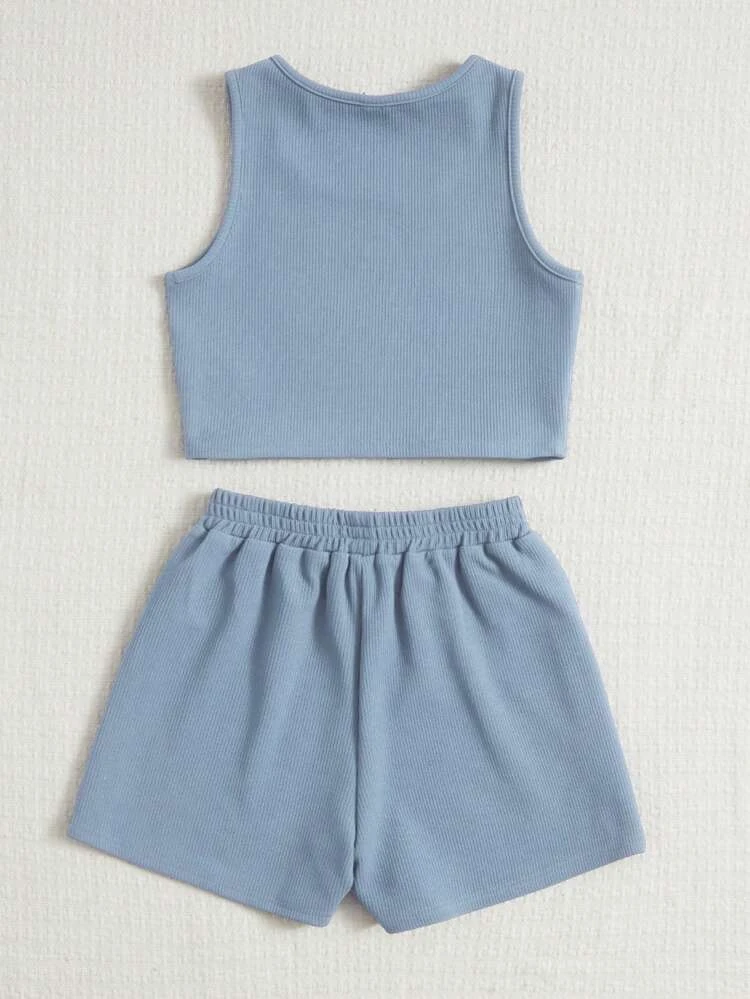 | nameOriginal | SHEIN Girls Solid Tank Top & Knot Waist Shorts |