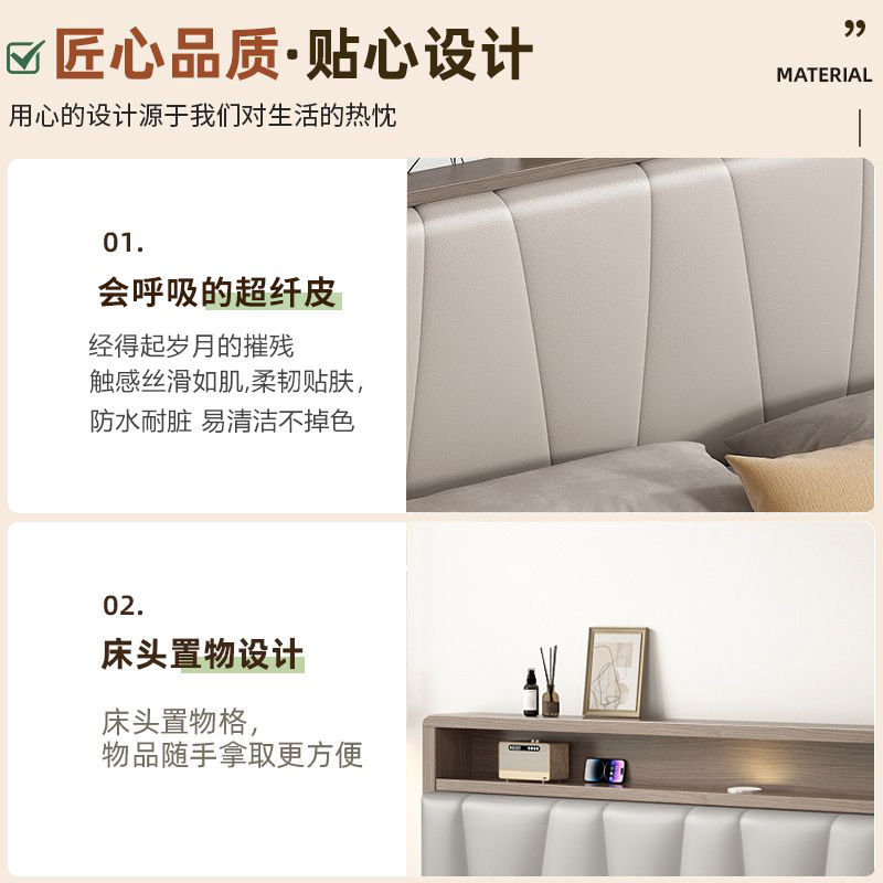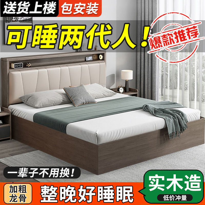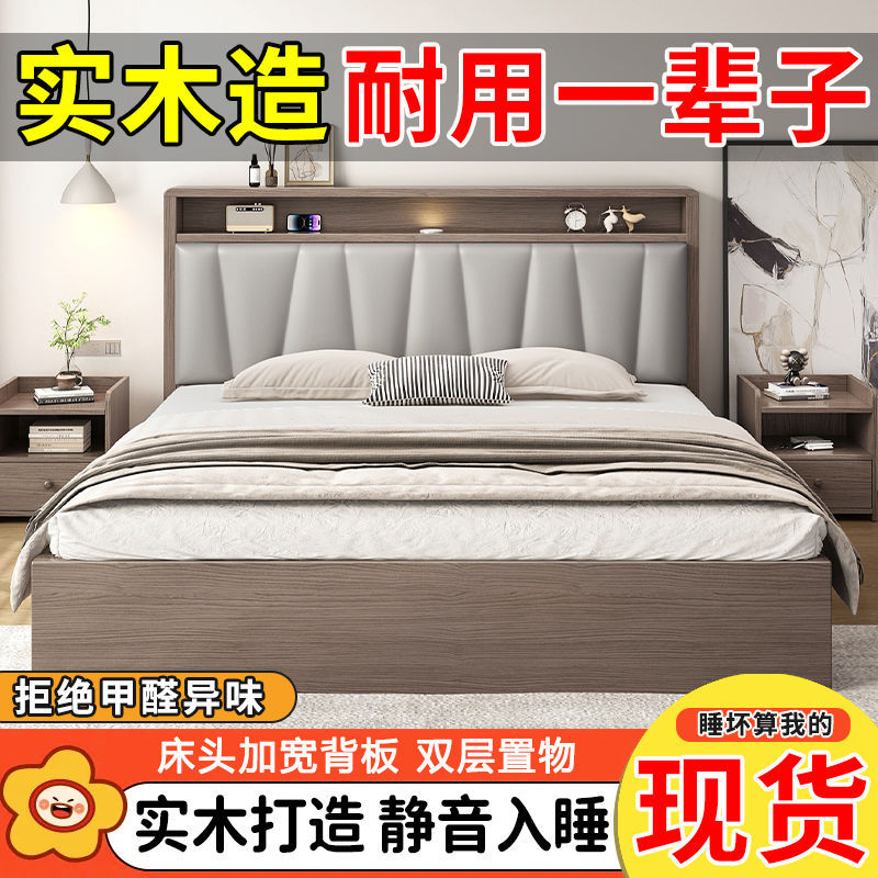 Solid Wood Bed Double 1.8x 2 m Household Soft Bed Single Bed Adult 1.5 m Box Master Bedroom Storage Solid Wood Bed