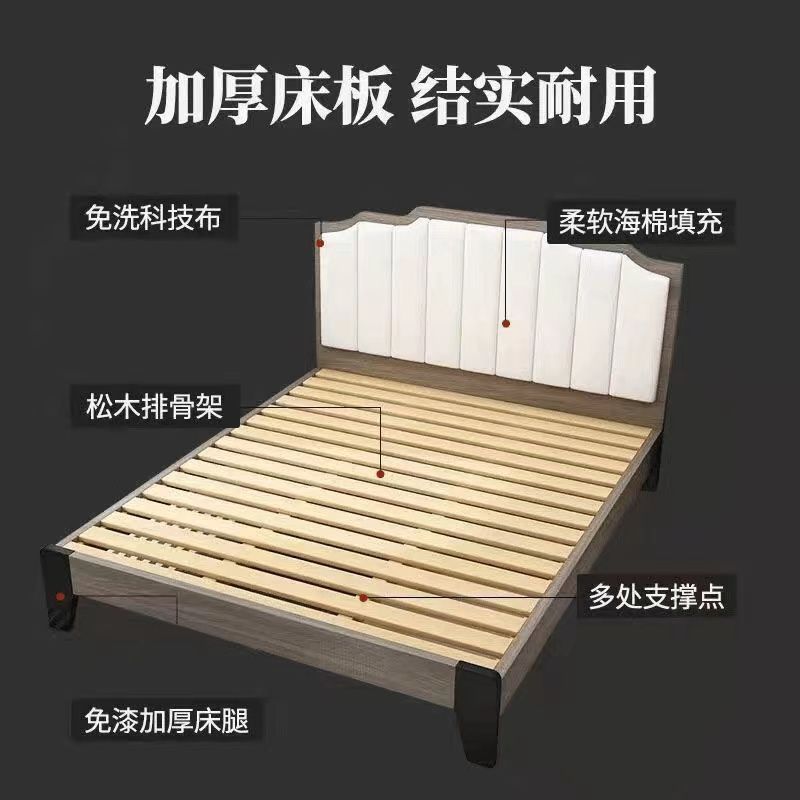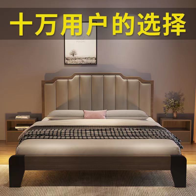 | nameOriginal | Solid Wood Bed Modern Simple Home Master Bedroom European Soft Bag Double Bed for Rental Simple Plate Bed |